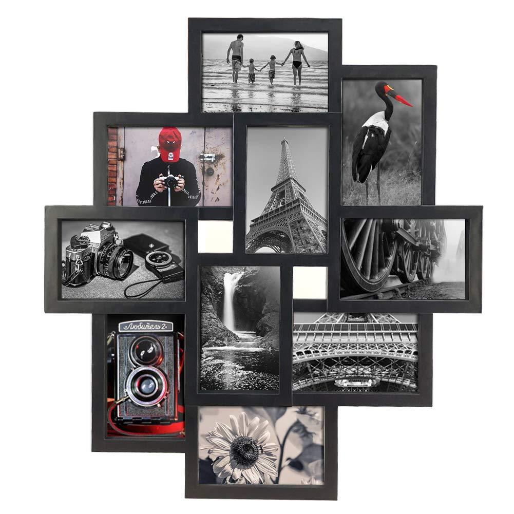 10 Opening 4x6 Black Collage Picture Frame Wall Hanging for 4 by 6 inch Multiple Photo Frames by Amazing Roo