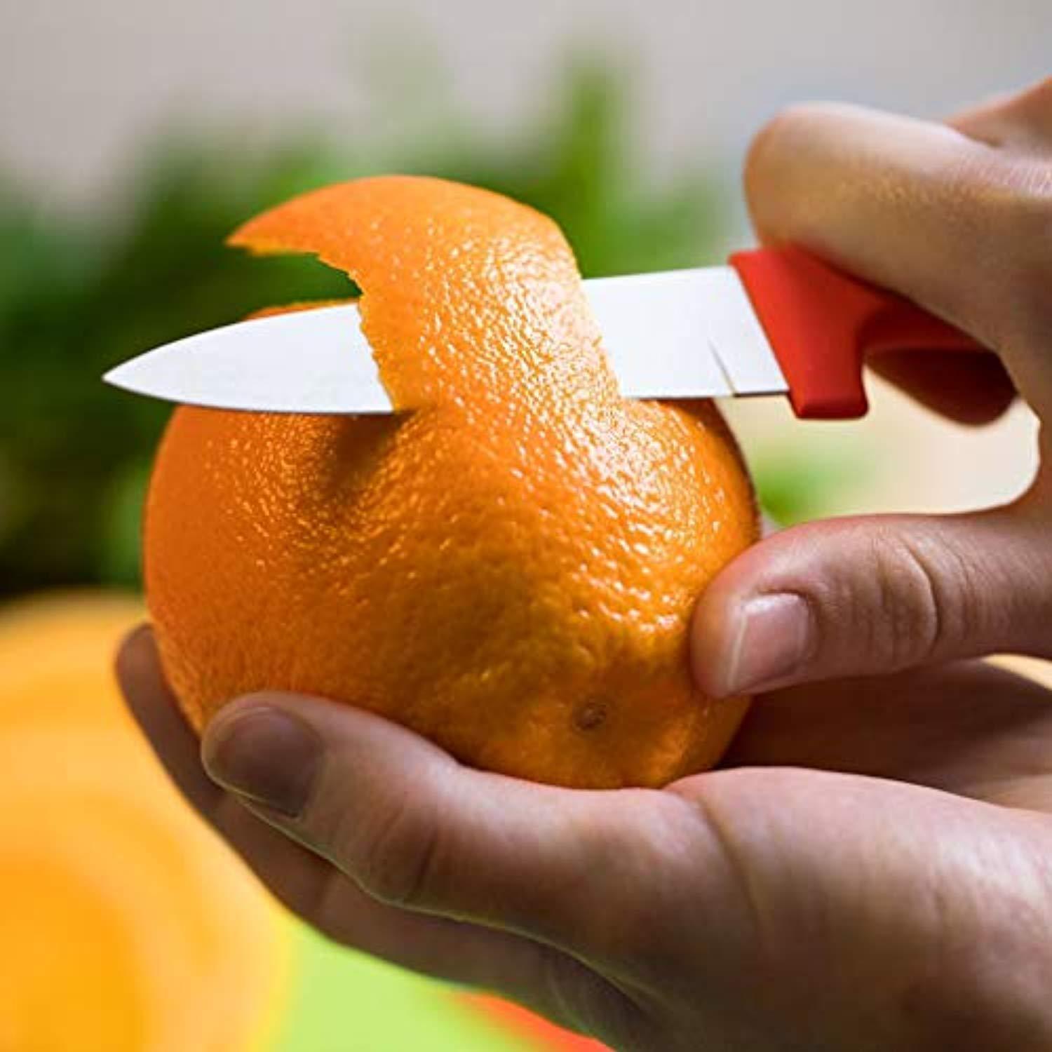 • ✅ THIS SET IS GORGEOUS - The vibrant colors of our Multicolor Knife Set with the crispness of the sleek white blades, will look absolutely STUNNING in your kitchen. SIZES: Our knife set includes 6 KNIVES and 6 PROTECTIVE COVERS meant to ensure that your knives are stored away safely. The set includes: 8" Chef Knife, 8" bread knife, 8" slicer knife, 7" santoku knife, 5" utility knife, and 3.5" paring knife.