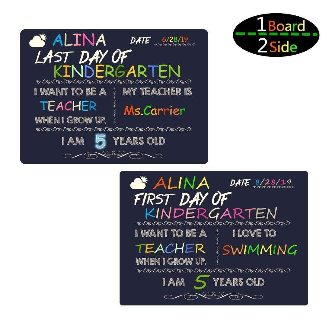 • Large size board:13.7" W x 9.8" H x 0.1" D.Include information about first day of school, date, age, teacher, things and what you want be. And it is big enough for you to write everything you want.