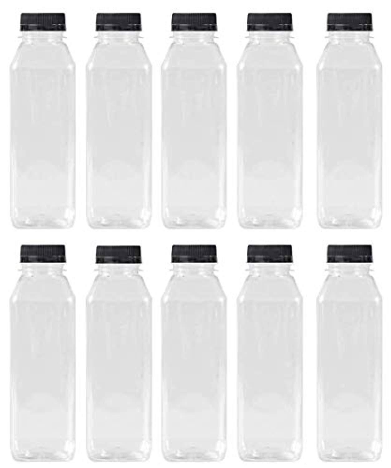 16 Oz Clear Plastic Juice/Dressing PET Square Container Bottles w/ Black Tamper Evident Caps by Pexale(TM)- (Pack of 10) (10)