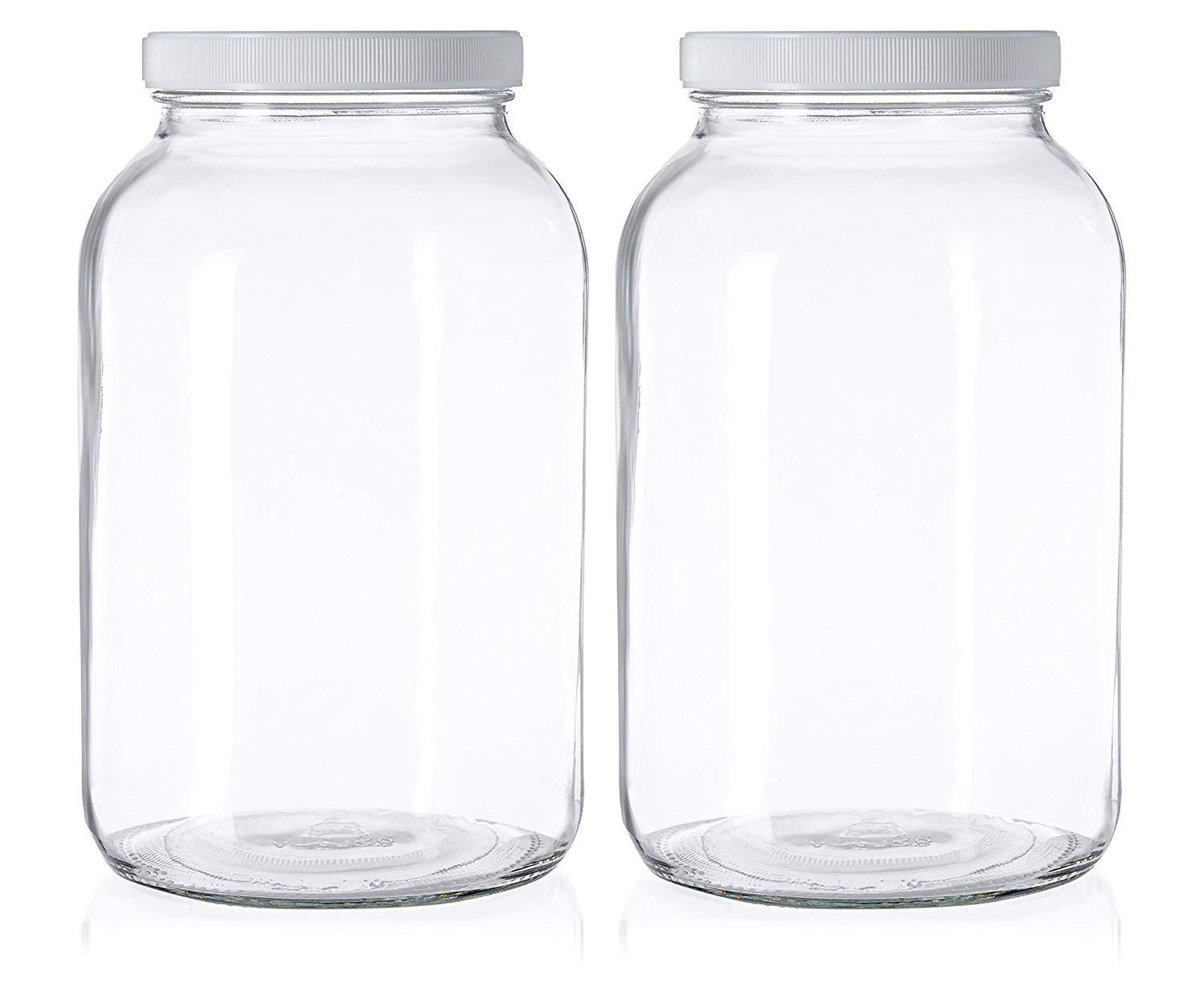 2 Pack - 1 Gallon Mason Jar - Glass Jar Wide Mouth with Airtight Foam Lined Plastic Lid - Safe Mason Jar for Fermenting Kombucha Kefir - Pickling, Storing and Canning - By Kitchentoolz