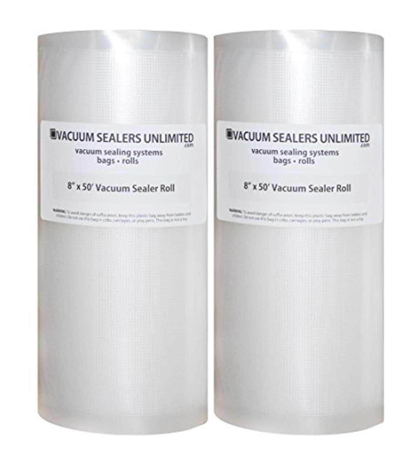 2 Pack of Vacuum Sealers Unlimited - 8" x 50' Rolls - Thicker, Heavy-Duty Commercial Quality Textured Vacuum Sealer Bags For Foodsaver, etc. - BPA Free & FDA Approved