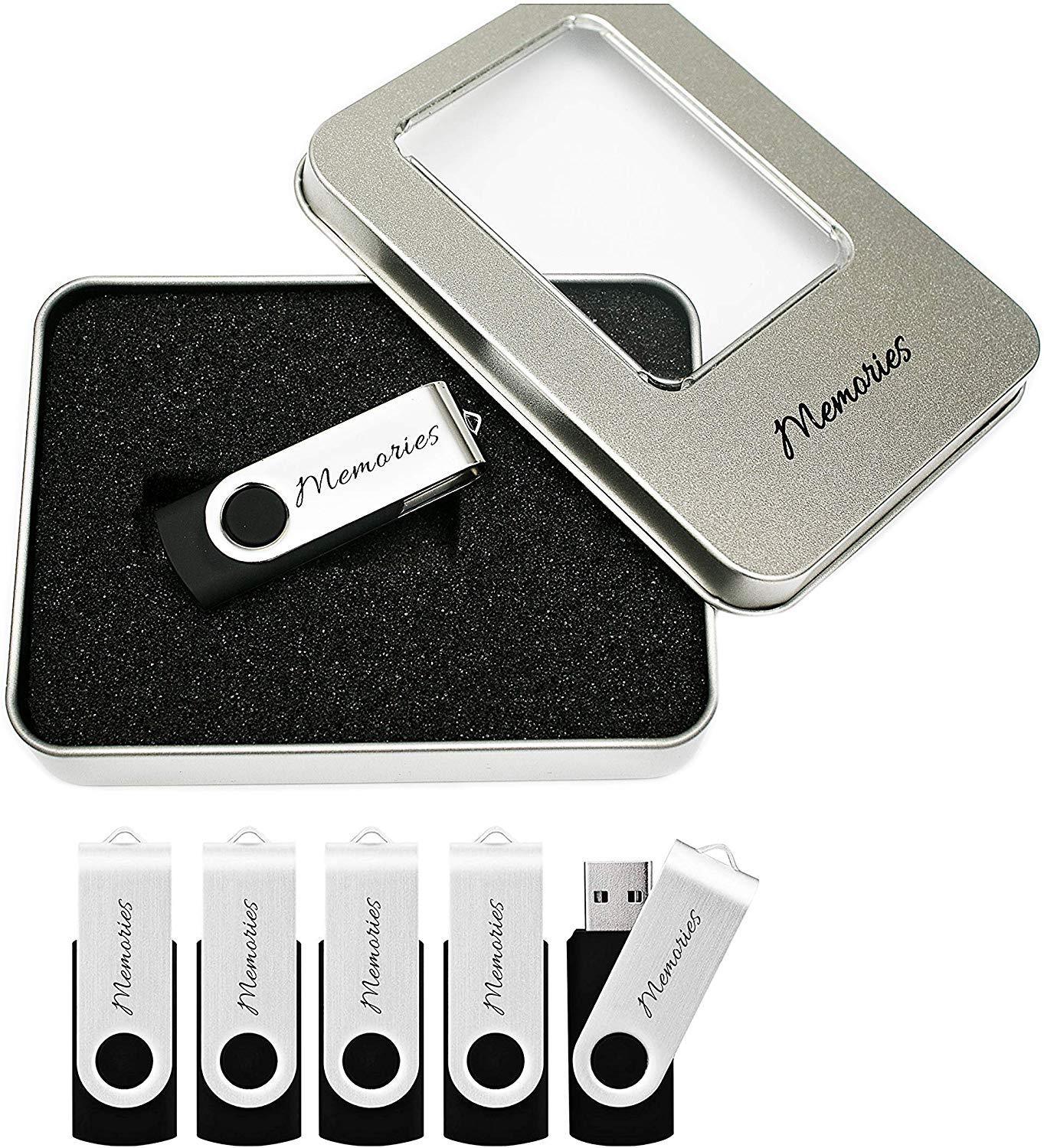 32GB USB Flash Drive 3.0 with Tin Case/Box Set of 5 Package.Custom Printed Flash Drive and Case for Weddings, Memories, Photo Storage, Perfect for Professional Photographers (32GB, Memories Label)