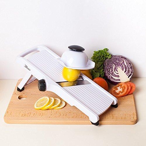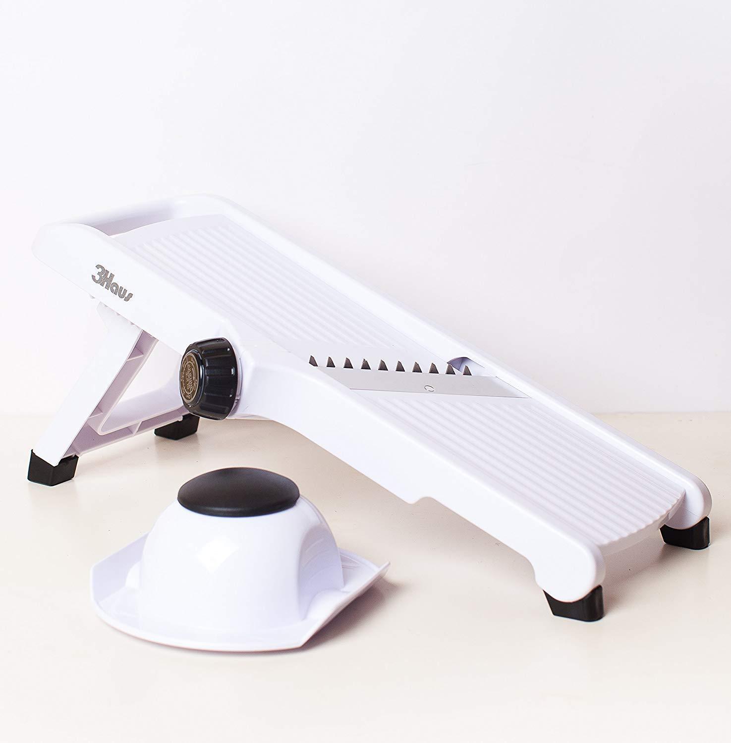 3Haus Adjustable White Professional Mandoline Slicer- Vegetable Slicer- Food Slicer- Julienne Cutter Mandolin Stainless Steel Plastic with Finger Guard - Best Christmas Gift Holiday Season Deal