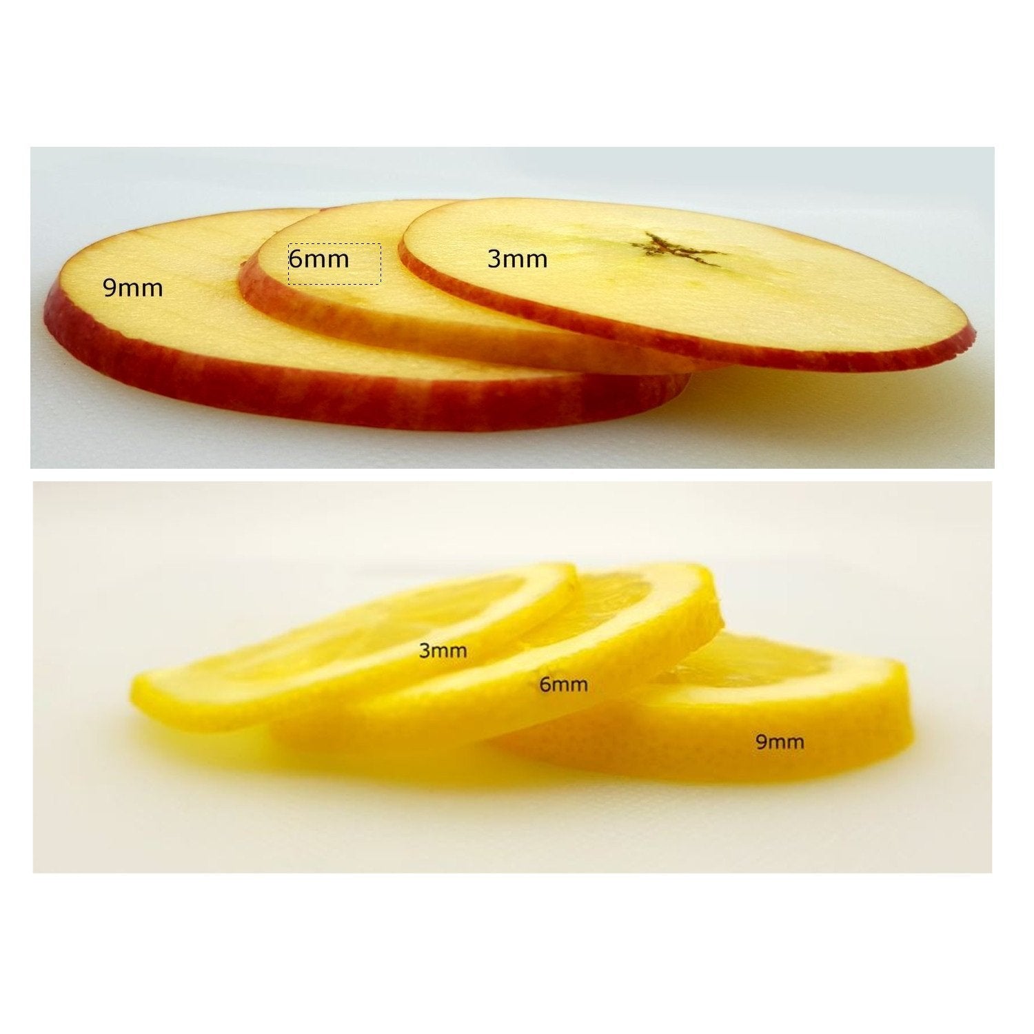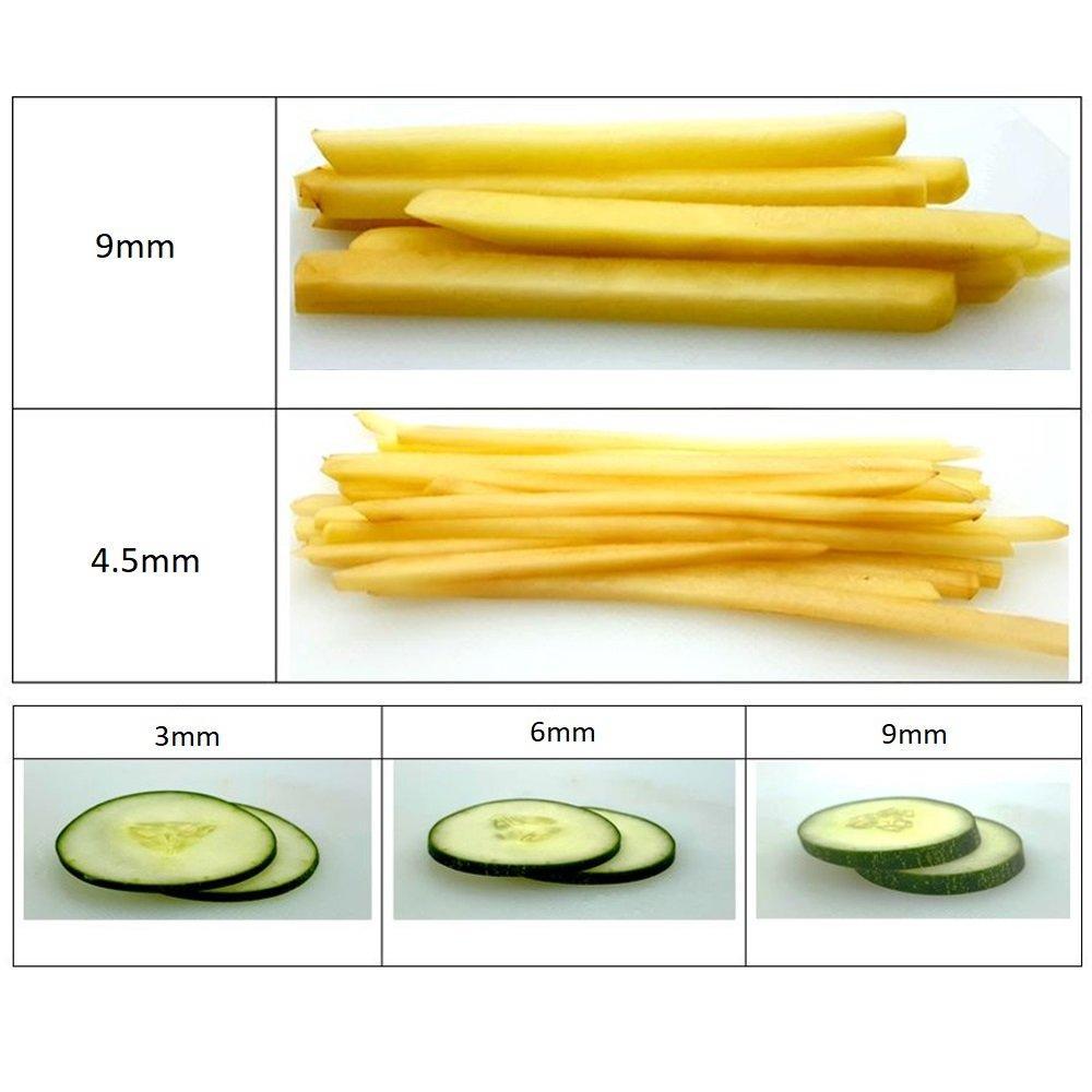 • SLICING MADE EASY – Adjustable knob makes changing between cuts a breeze. No more clutter of different blades for each individual cut. The adjustable blade allows you to create professional looking slices or Juliennes from paper thin 1mm to 9mm slices, 4.5mm Julienne and 9mm Julienne. Great for making fries, chips, onion circles and salads