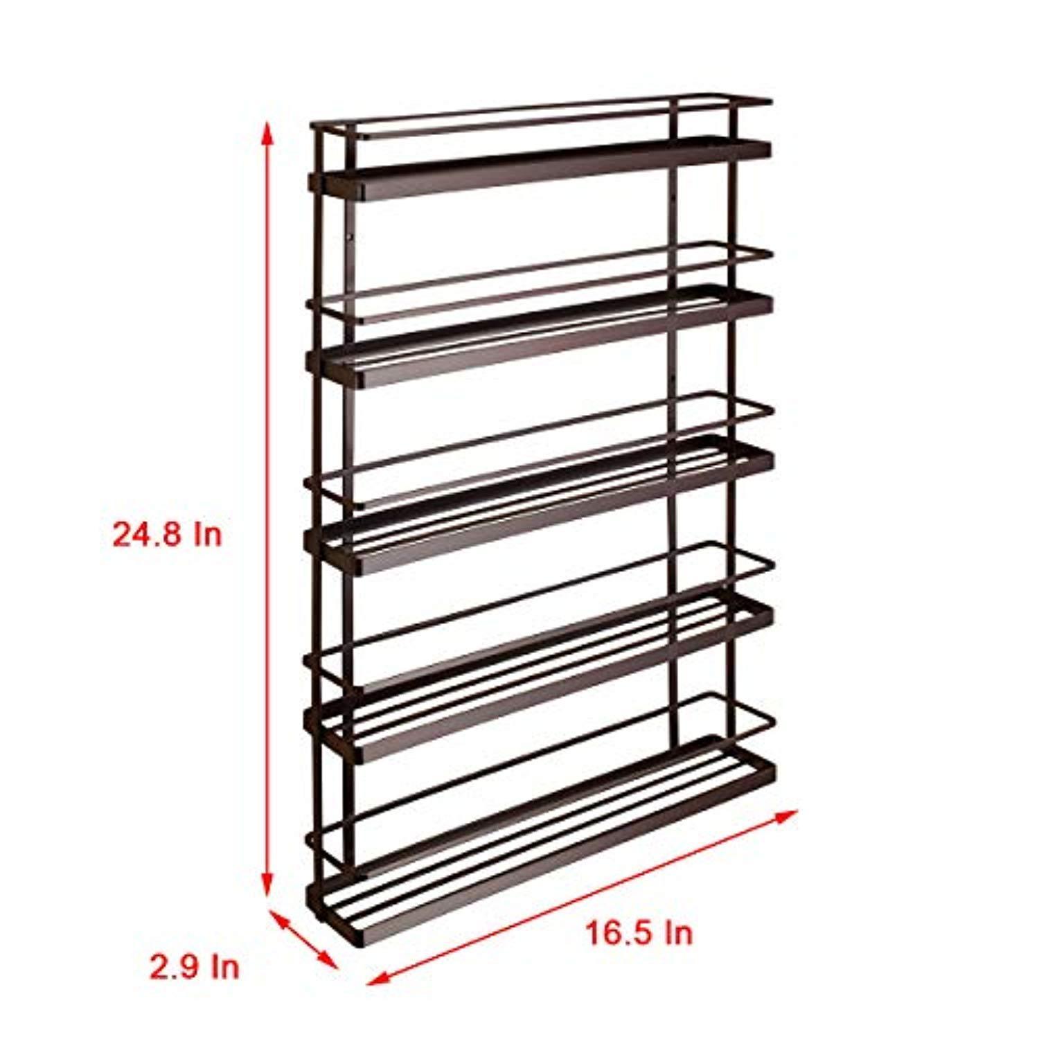 • 5 TIERS - Plenty of room to store up to 45 spice jars.Attach to the wall or to the inside door of a kitchen cabinet or pantry door to keep your kitchen more tidy and neat.