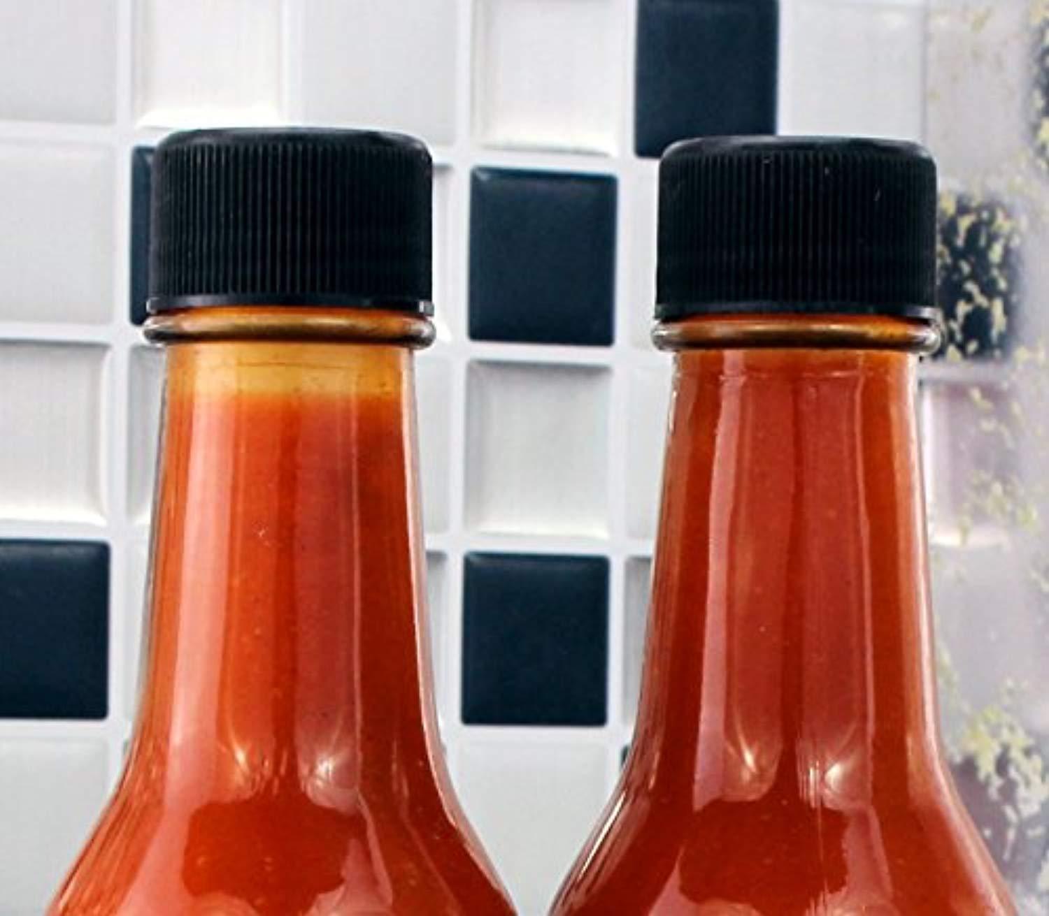 • SAFE AND PROFESHCONAL - Fill the bottle, top with the dripper, screw on cap, and then shrink the lid sleeve for a professional, safely sealed sauce.