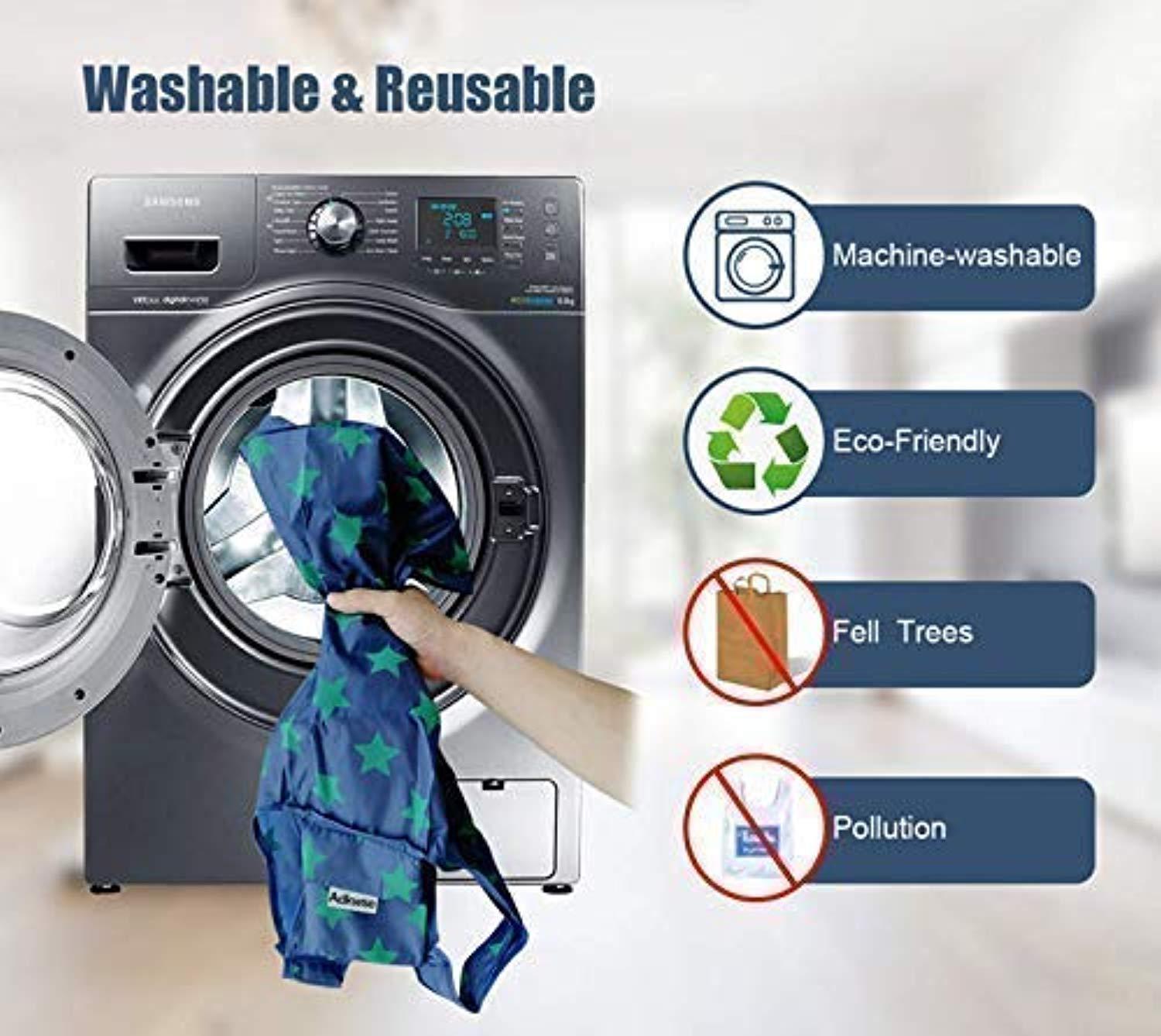 • Washable & Reusable Grocery Bag: reusable grocery shopping bags only use pure ripstop polyester to craft, our standard shopping bags reusable. Our shopping tote can be washed every time after you use. Recommend Mild Detergent and Hang to Dry!