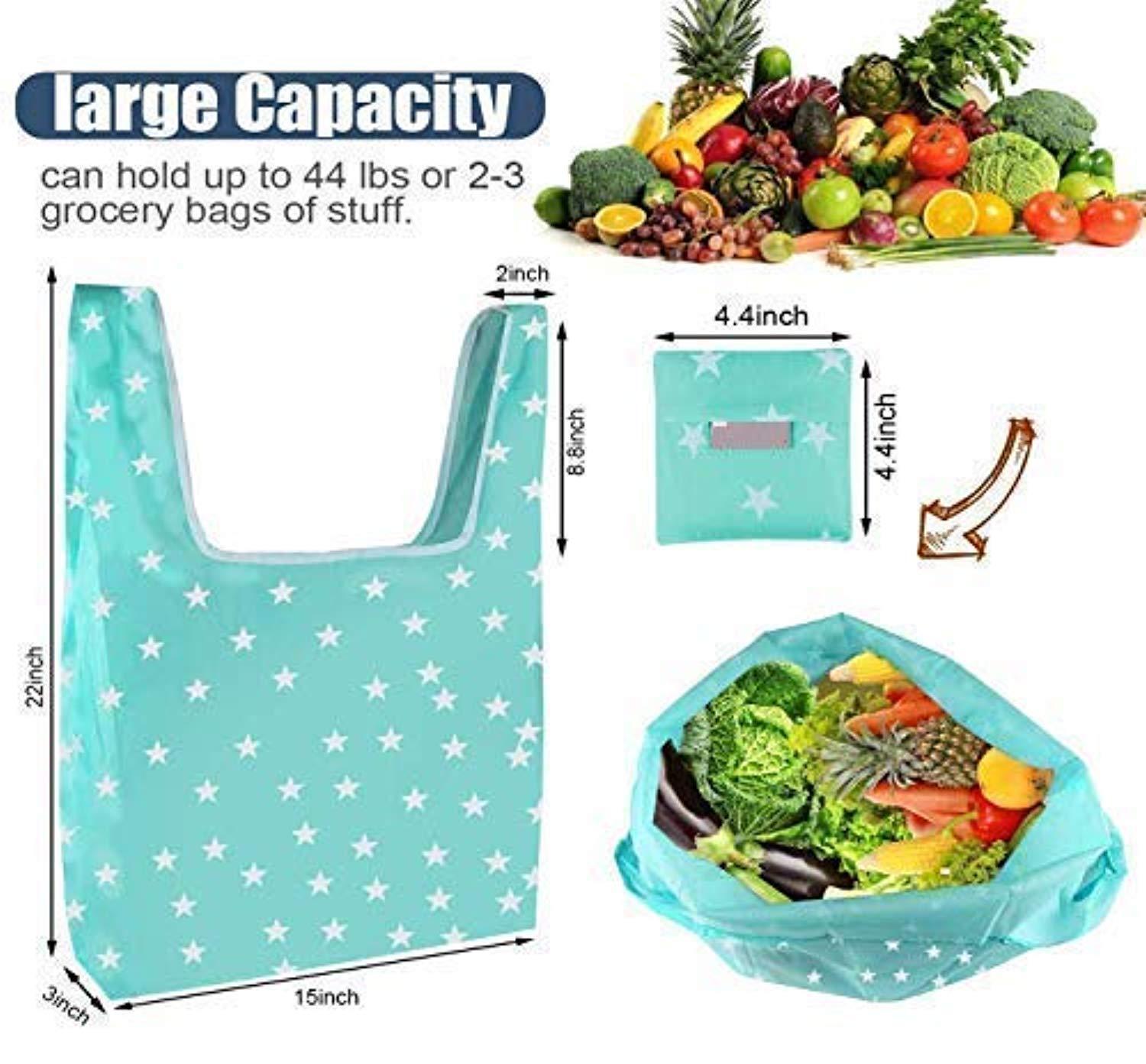 • X-Large Capacity & Sturdy: Strong yet lightweight, shopping bag can hold up to 35lbs. Of stuff and replaces 2-3 conventional shopping bags; The handles of reusable shopping bags are sturdy, so it allows for hand holding or over the shoulder tote. shopping bag are reinforced with double stitches which makes them hold heavy loads safely.
