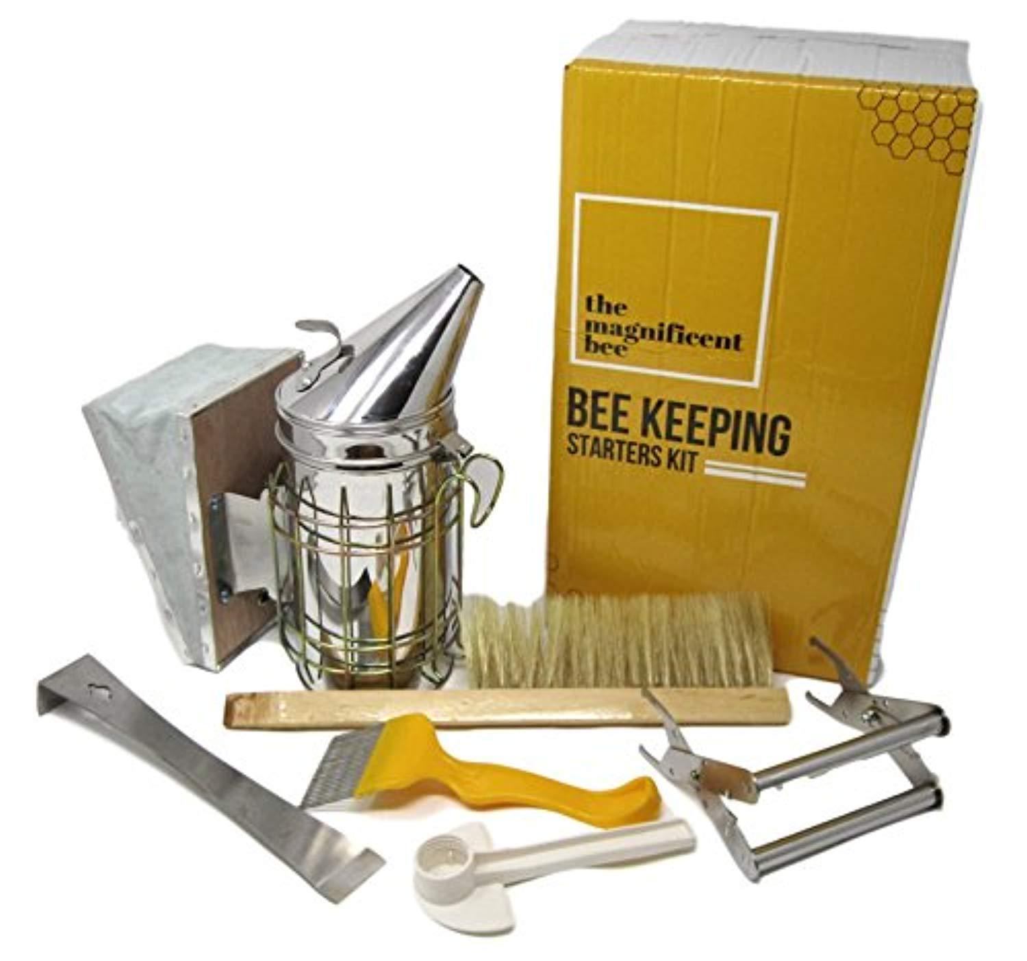 • THE MAGNIFICENT BEE BEEKEEPING KIT INCLUDES - 1 Large Bee Hive Smoker, Uncapping Fork Tool, Bee Brush, Frame Grip, Extracting Scraper, Bee Feeder Tool