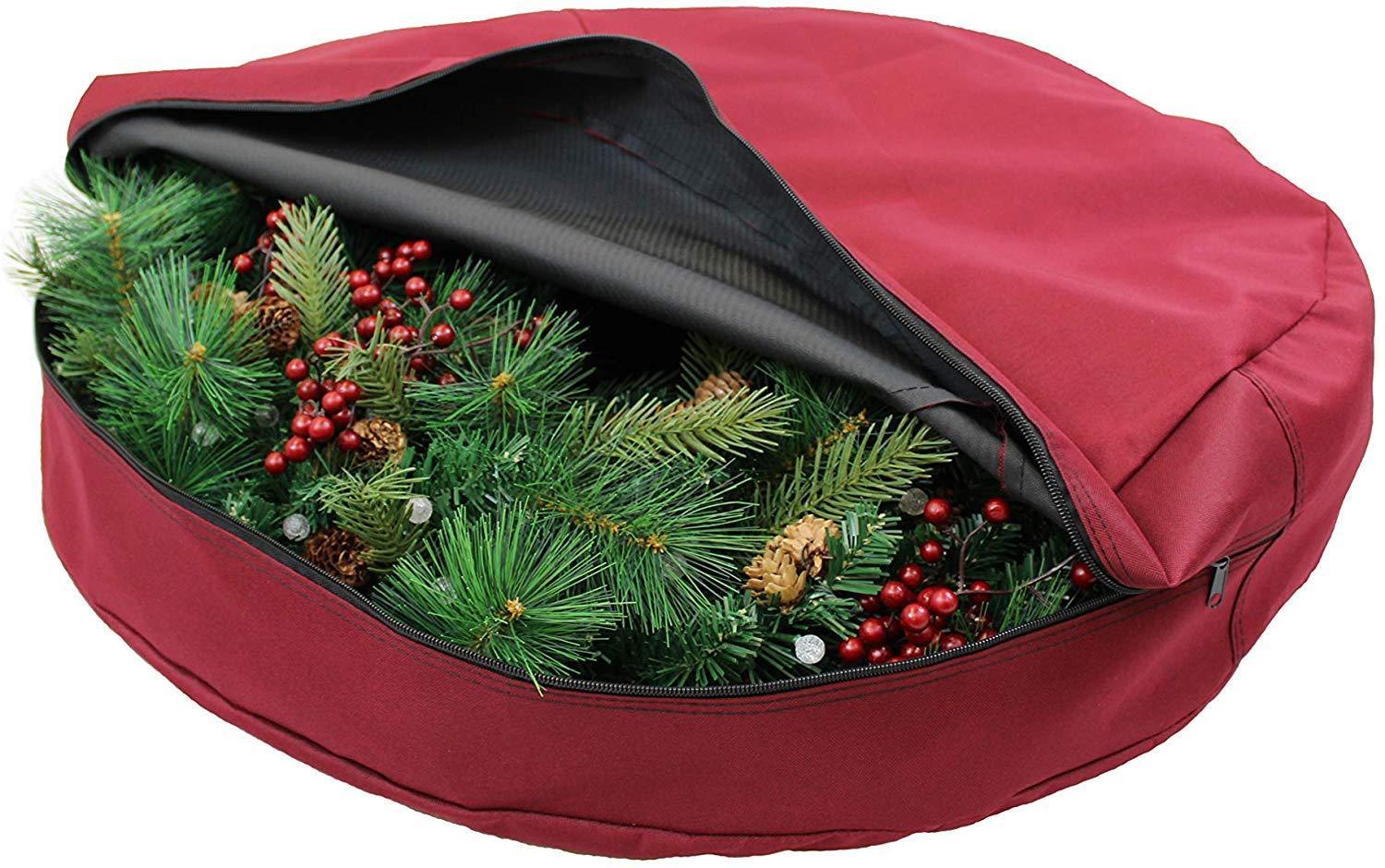 Polyester Holds artificial wreaths up to 24” wide x 7” deep Large zipper opening provides easy access...