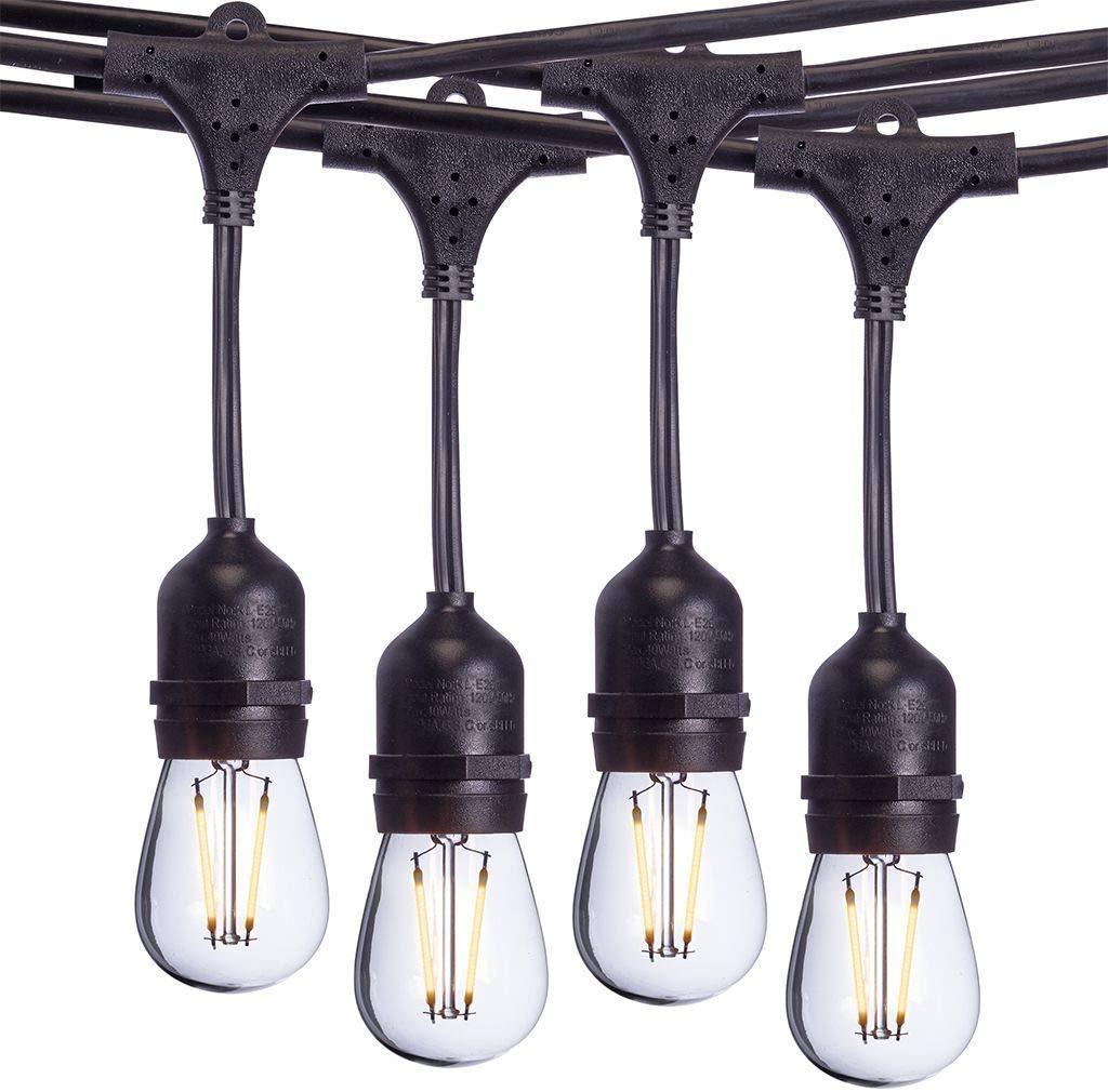 Aceland 24 Ft Waterproof Heavy-Duty LED Outdoor String Lights - Hanging, 7 Head Dimmable 2W Shatterproof Vintage Edison Bulbs Commercial Grade Patio Lights Create Cafe Ambience in Your Backyard