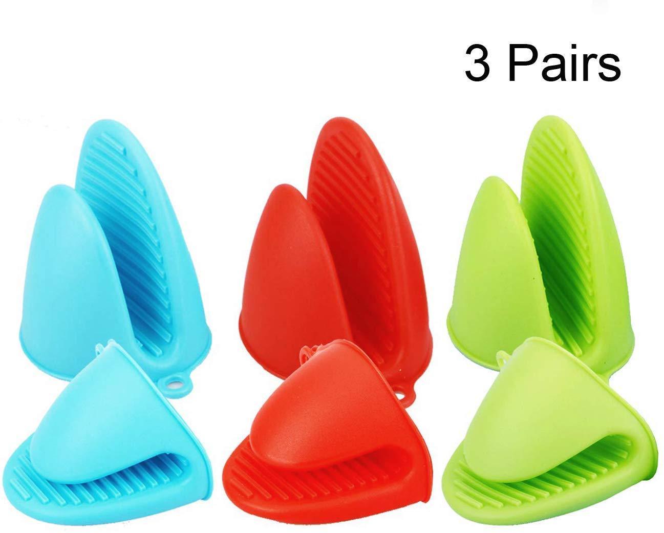 Acronde 2 Pairs Mini Oven Gloves Silicone Heat Resistant Cooking Pinch Mitts Potholder for Kitchen Cooking & Baking, Red and blue