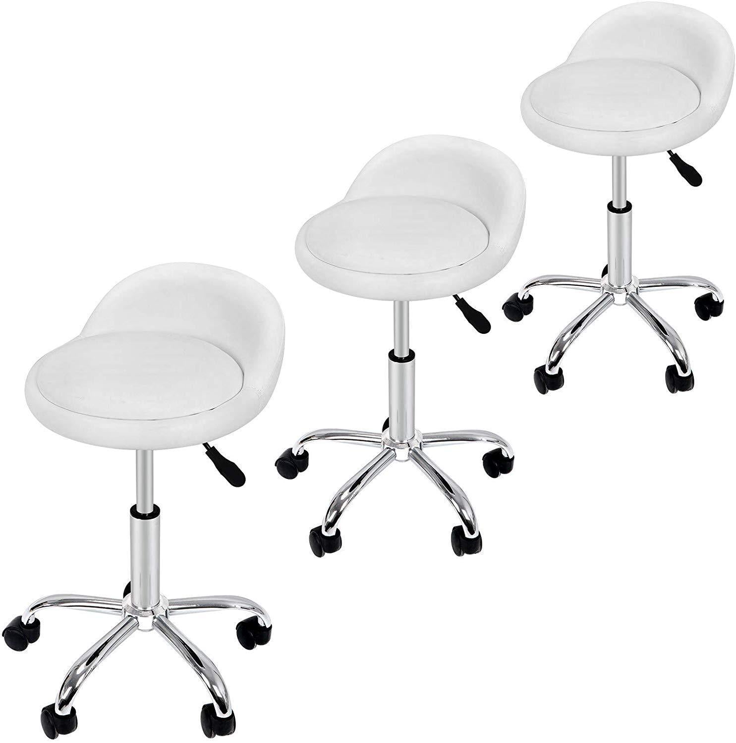 Adjustable Hydraulic Rolling Swivel Salon Stool Chair Tattoo Massage Facial Spa Stool Chair with Back Rest (PU Leather Cushion) (1PCS)
