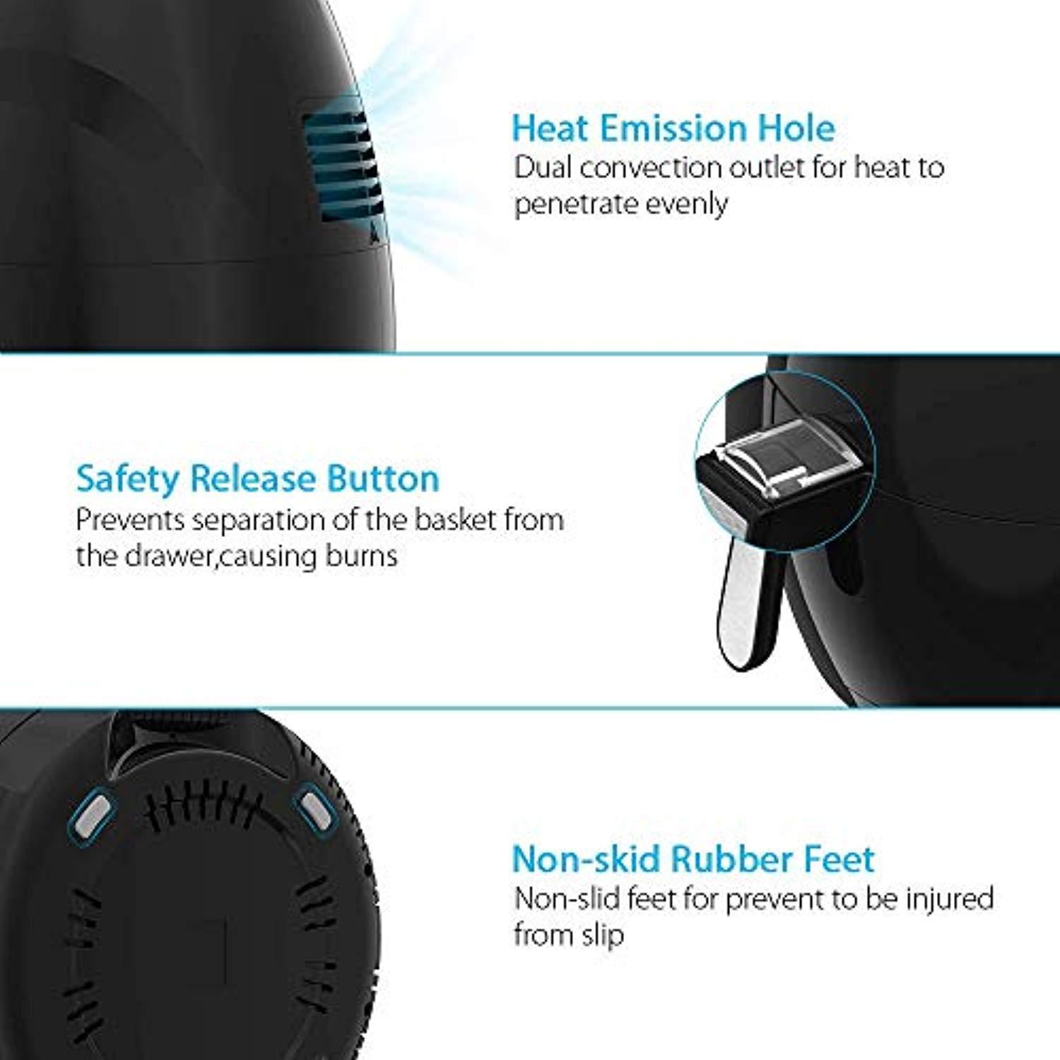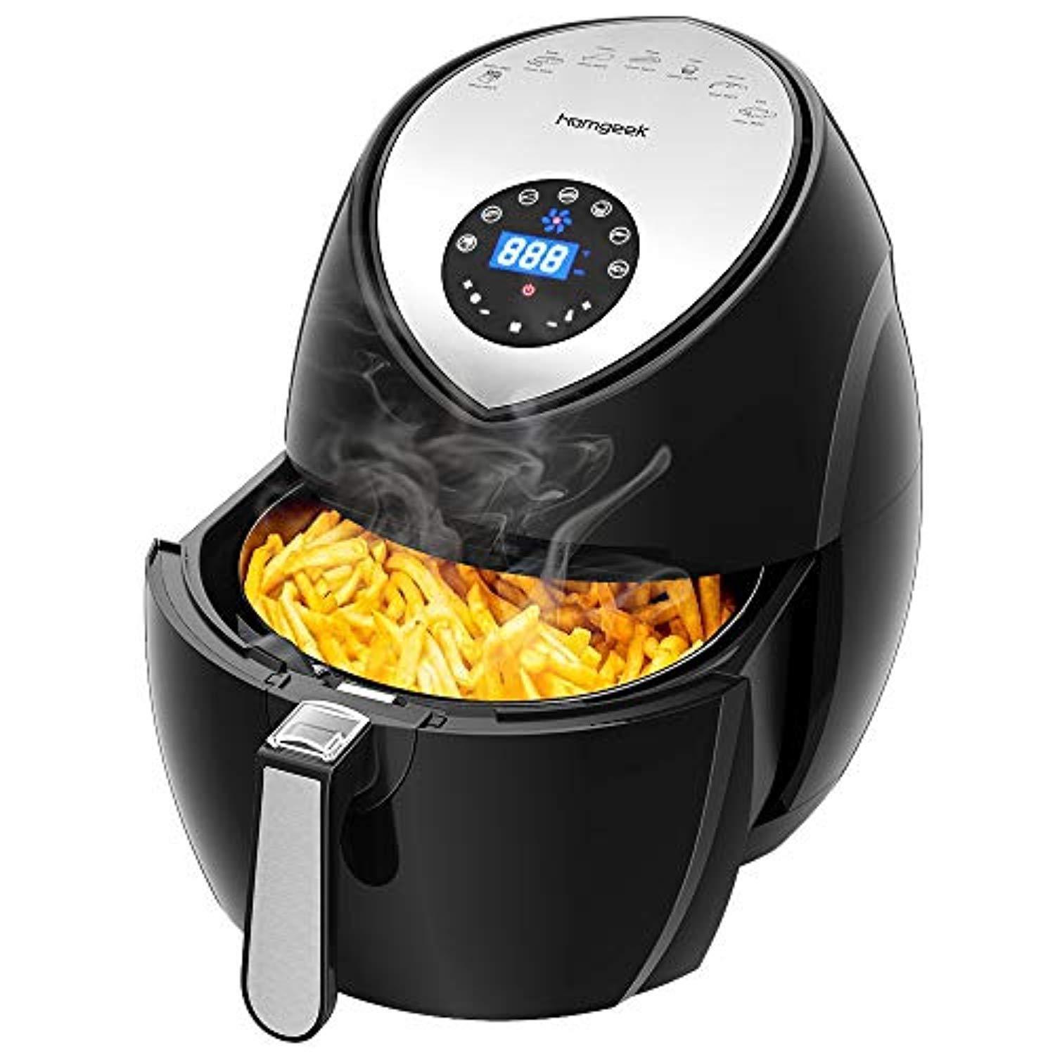 • 【Homgeek Promise: 1year warranty】Rapid Air Circulation Technology : Use and hot air to fry foods with little or no added oil so that you can both have a healthy lifestyle and enjoy your favorite fried food. We also adopt advanced LED touch screen techniques in order to save your time on cooking.