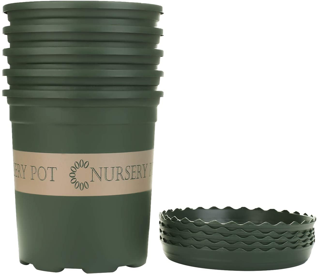 Akarden 5PCS 1 Gallon Nursery Pot Garden Planter Pots Nursery Plant Container with 5PCS Pallet (ArmyGreen)