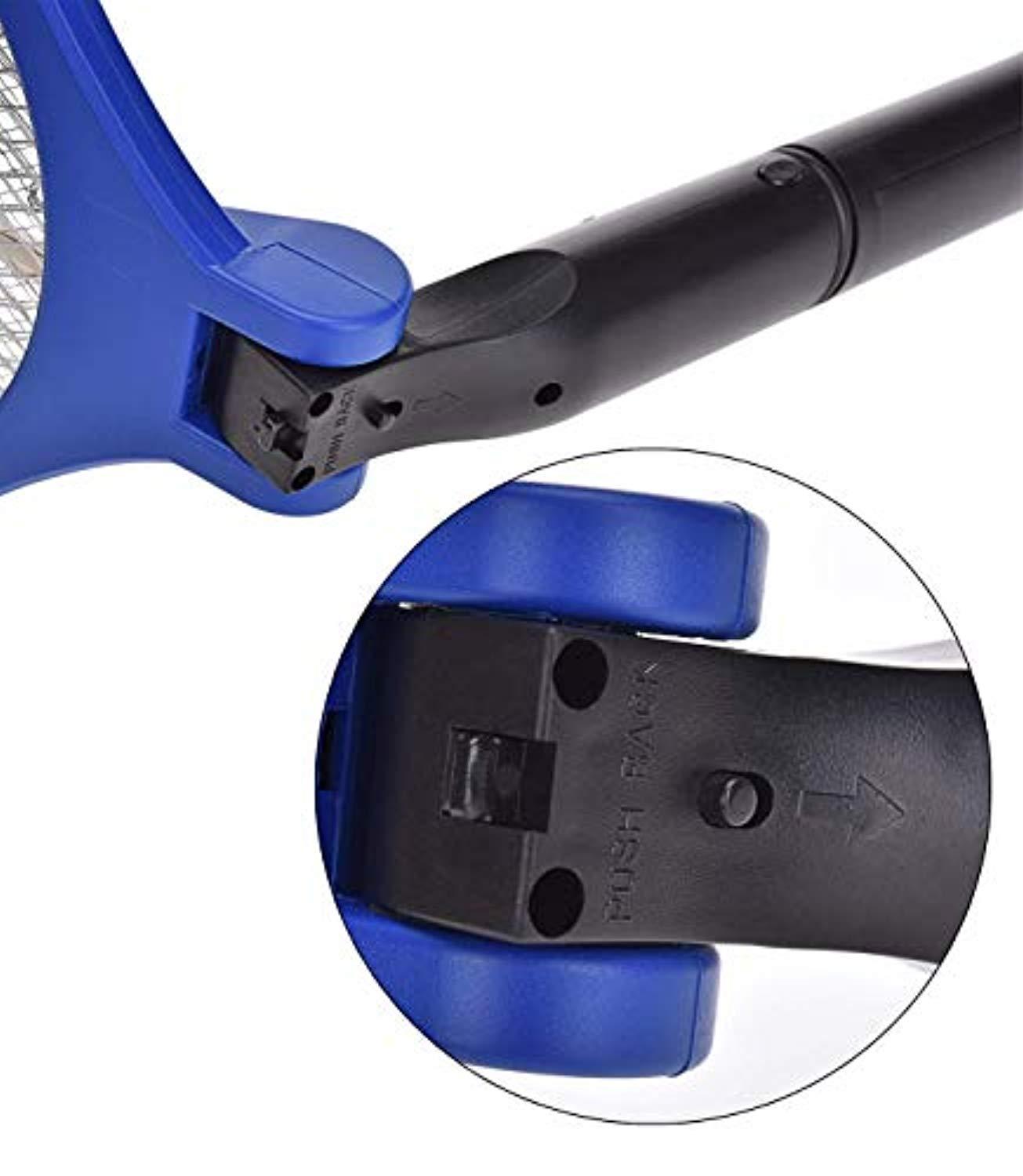 • BATTERIES EASILY REPLACEABLE: Runs on 2x AA (not included). No looking for wall sockets to charge.*******Note: 1.Push the sliding SAFETY switch all the way down toward the ground when not in use to conserve battery. 2.Please click and push down the [push back] button when you want to fold the swatter, Don't use brute force that may broken the Folding lock