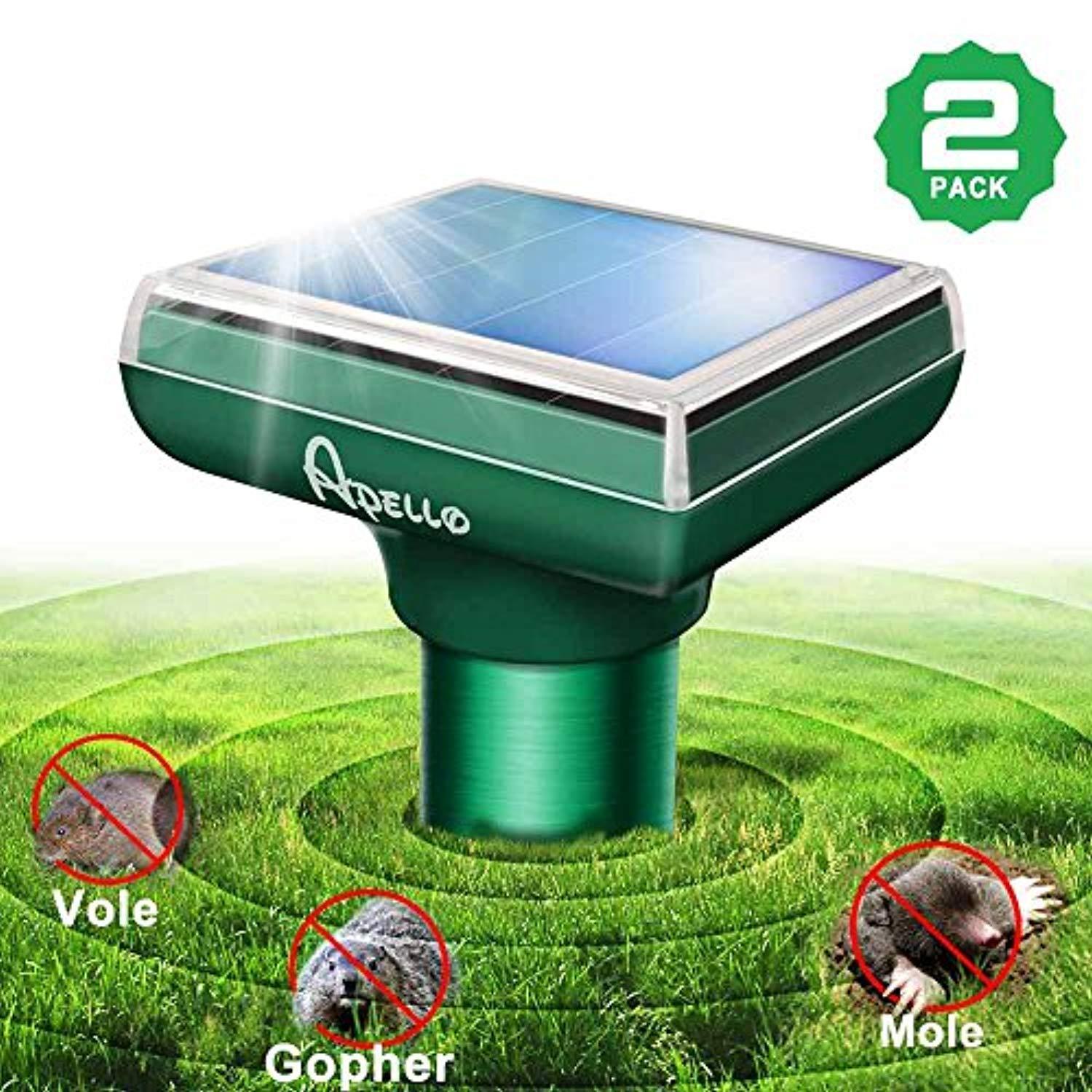Apello 2 Pack Mole Repellant Solar Mole Repeller Chipmunk Repellent Vole Gopher Repellent Ultrasonic Get Rid of Moles No Killing Like Mole Traps Gopher Trap Mole Killer or Mole Poison