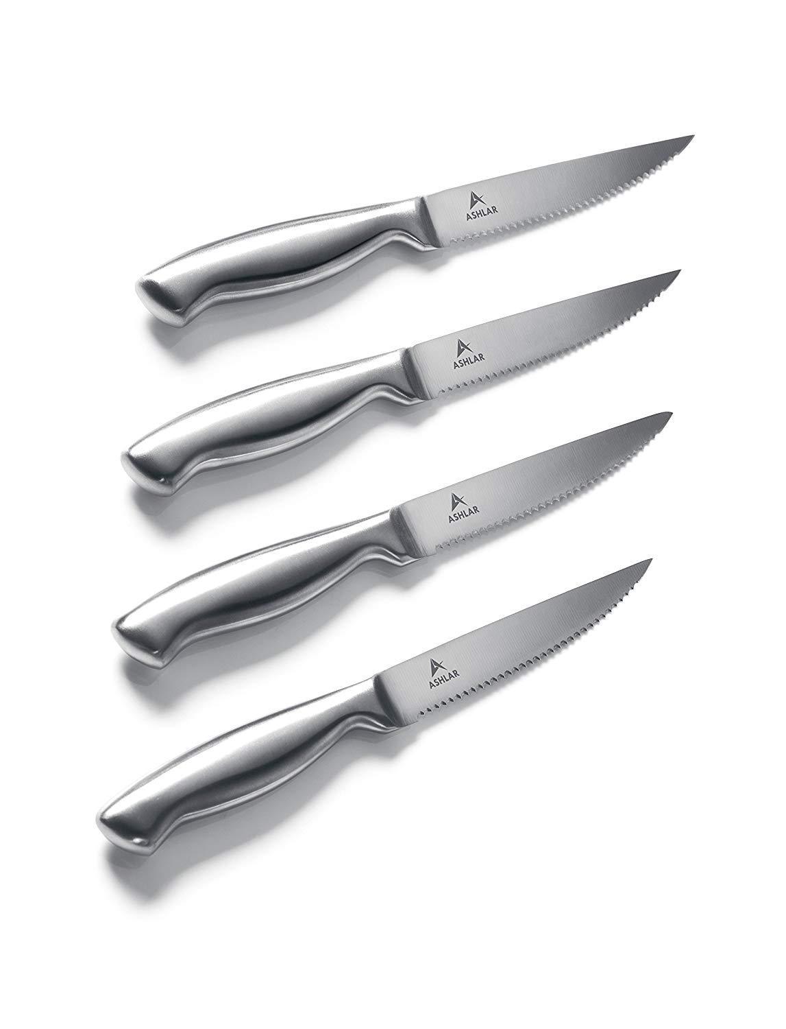 Ashlar Steak Knives Set of 6 Serrated Stainless Steel Dishwasher Safe Ideal Family Dinner Kitchen Set Premium Full Edge Serration Rust Resistant