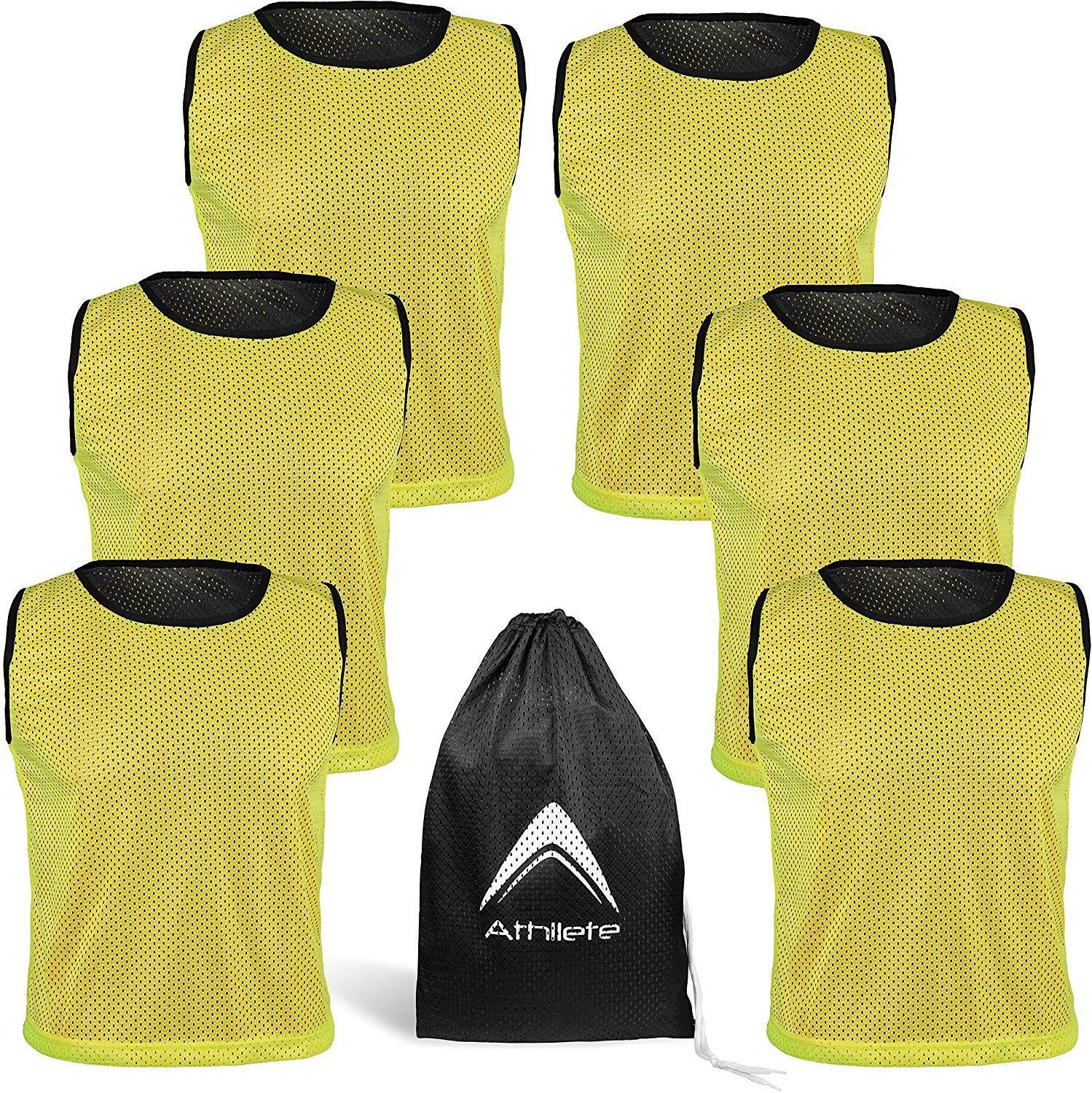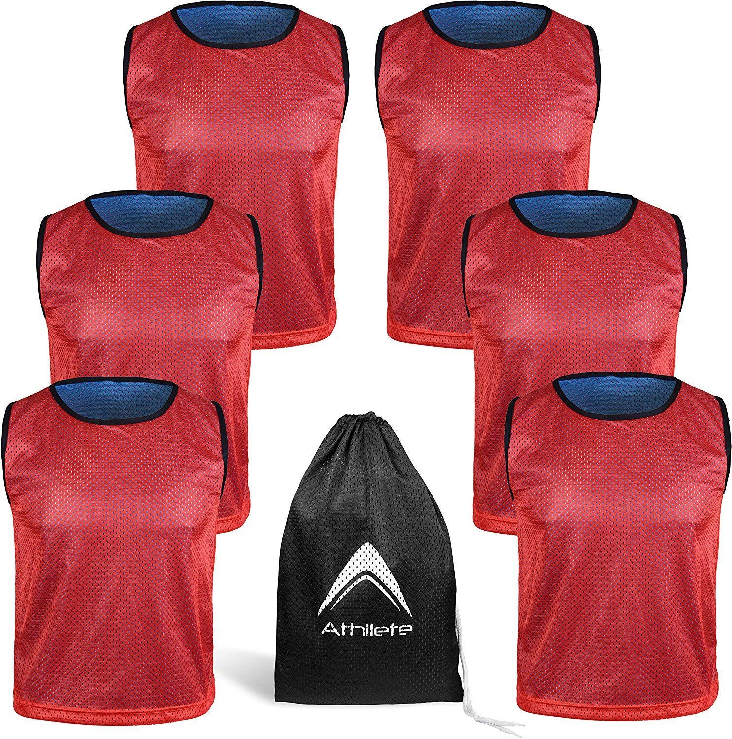 • Set of 6 Athllete Reversible Pinnies / Scrimmage Vests / Training Bibs / Sports Jerseys with FREE Black carry BAG for easy handling. Perfect for sports like basketball, soccer, football and lacrosse.
