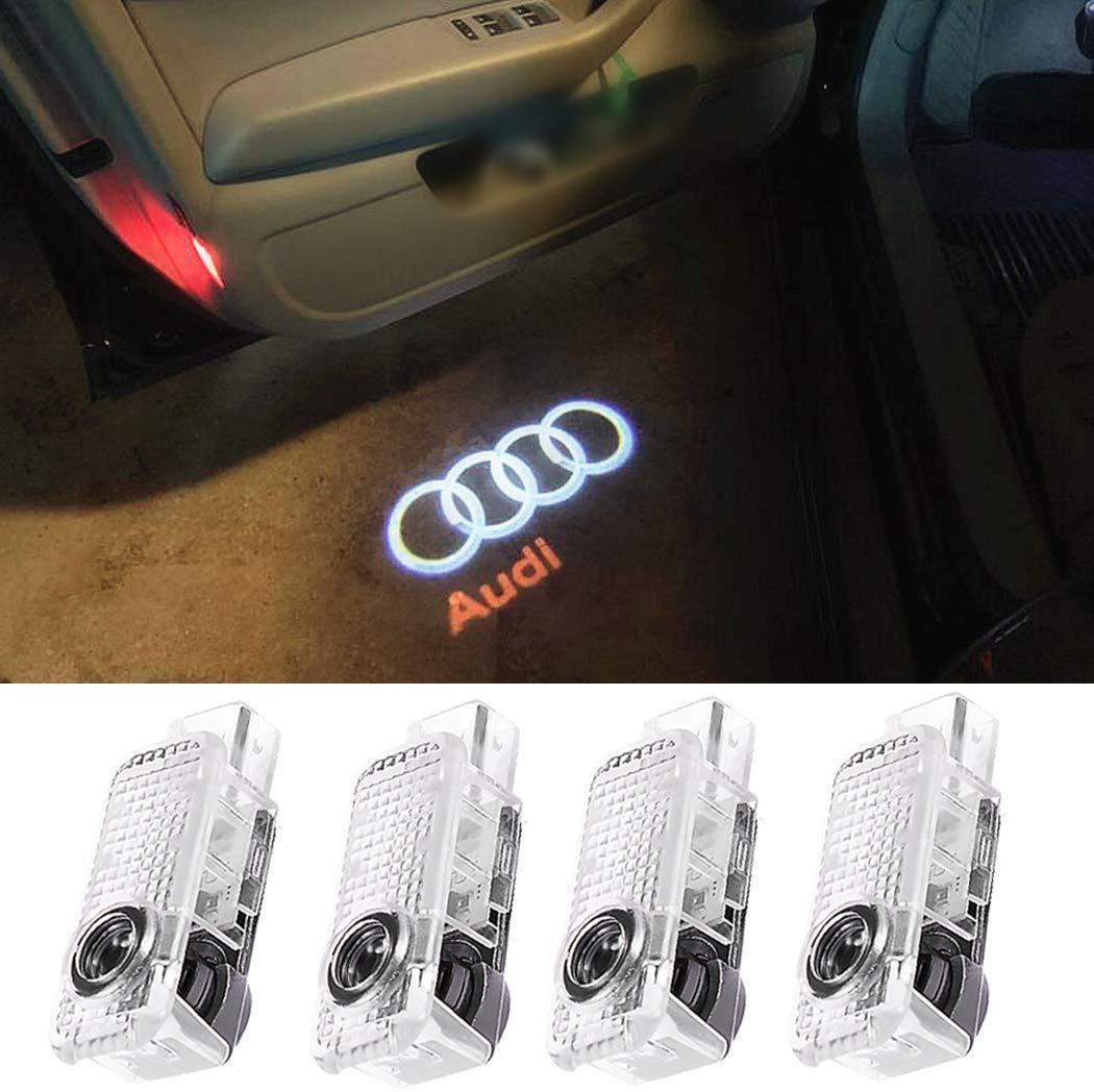 Audi car Accessories Door Logo Led Light Car Door Projector Lights Ghost Shadow Light Audi Puddle Emblem Welcome Lights Reflector For Audi A1 A3 A4 A5 A6 A7 A8 Q3 Q7 R8 TT Auto Accessories Part 4 PCS