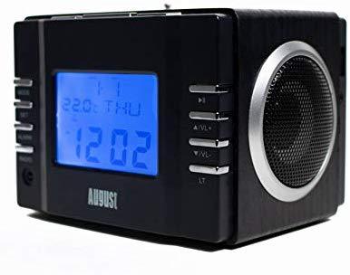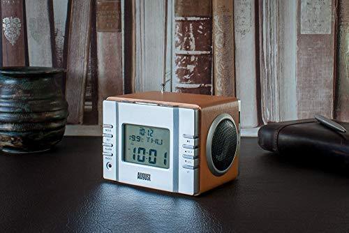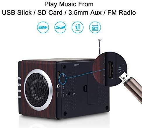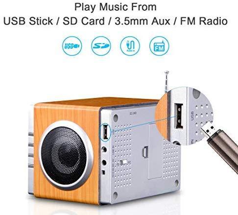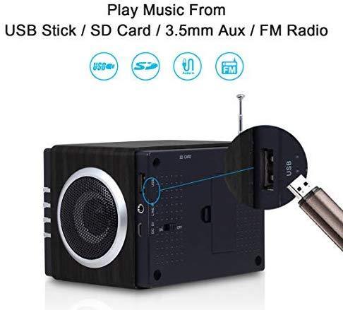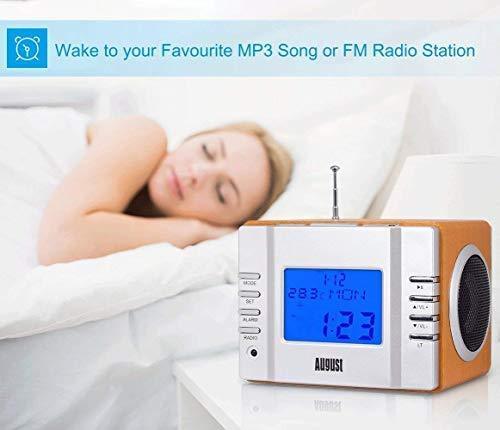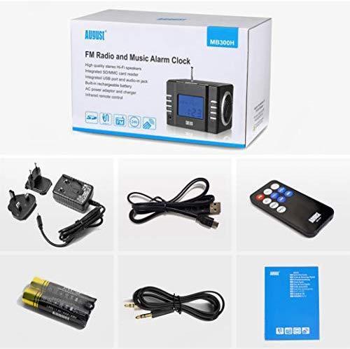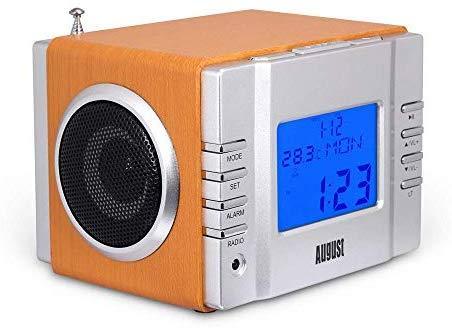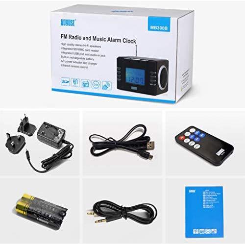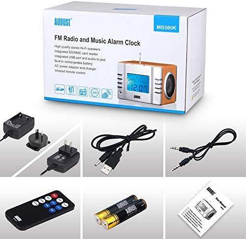 August MB300 Mini Wooden MP3 Stereo System and FM Clock Radio, with Card Reader, USB Port & AUX Jack (3.5mm Audio In), 2 x 3W Powerful Hi-Fi Speakers and Built-in Rechargeable Battery