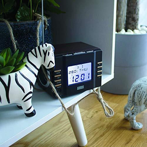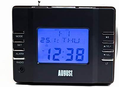 • Alarm Clock with wake me by MP3, buzzer and radio modes plus 2xAA batteries for time backup; LCD Screen with 12 or 24hr time display and temperature in Celsius or Fahrenheit