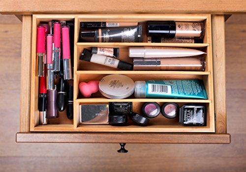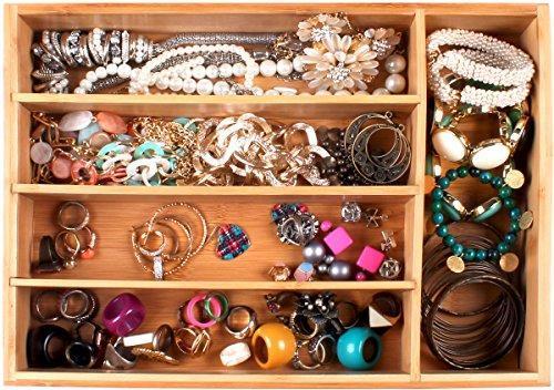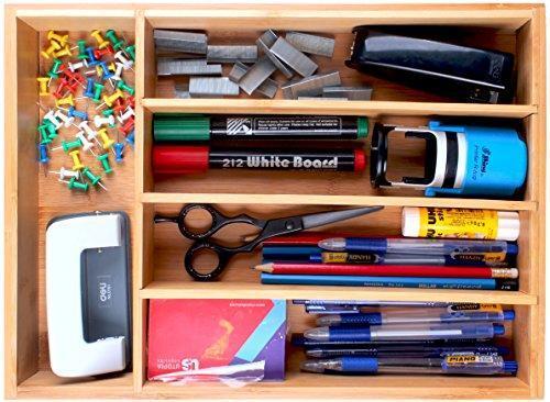• Made from Eco-friendly Bamboo, the tray features an ingenious design to help you organize your flatware, cutlery and kitchen gadgets without creating a mess in the drawer