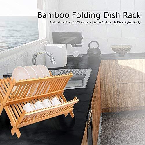 Bamboo Dish Drying Rack, SZUAH Collapsible Dish Drainer, Foldable Dish Rack Bamboo Plate Rack, By 100% Natural Bamboo (17.5" x 13" x 9.6")