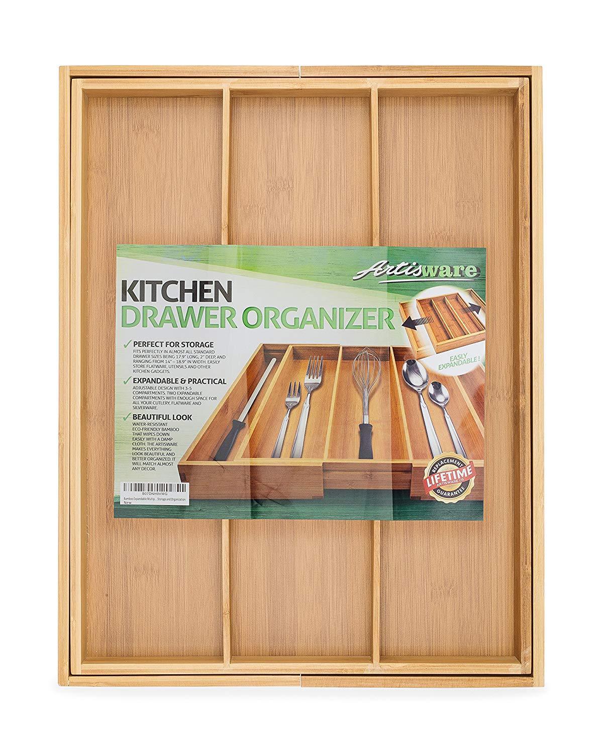 • BEAUTIFUL LOOK - Water-resistant eco-friendly bamboo that wipes down easily with a damp cloth. The Artisware makes everything look beautiful and better organized. It will match almost any decor.
