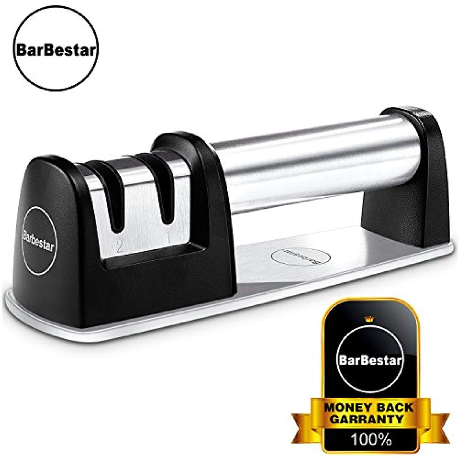 • Easy to use: This two stage knife sharpener by barbestar quickly sharpens any straight edge steel knives without the fuss. A must knife grinder in your kitchen