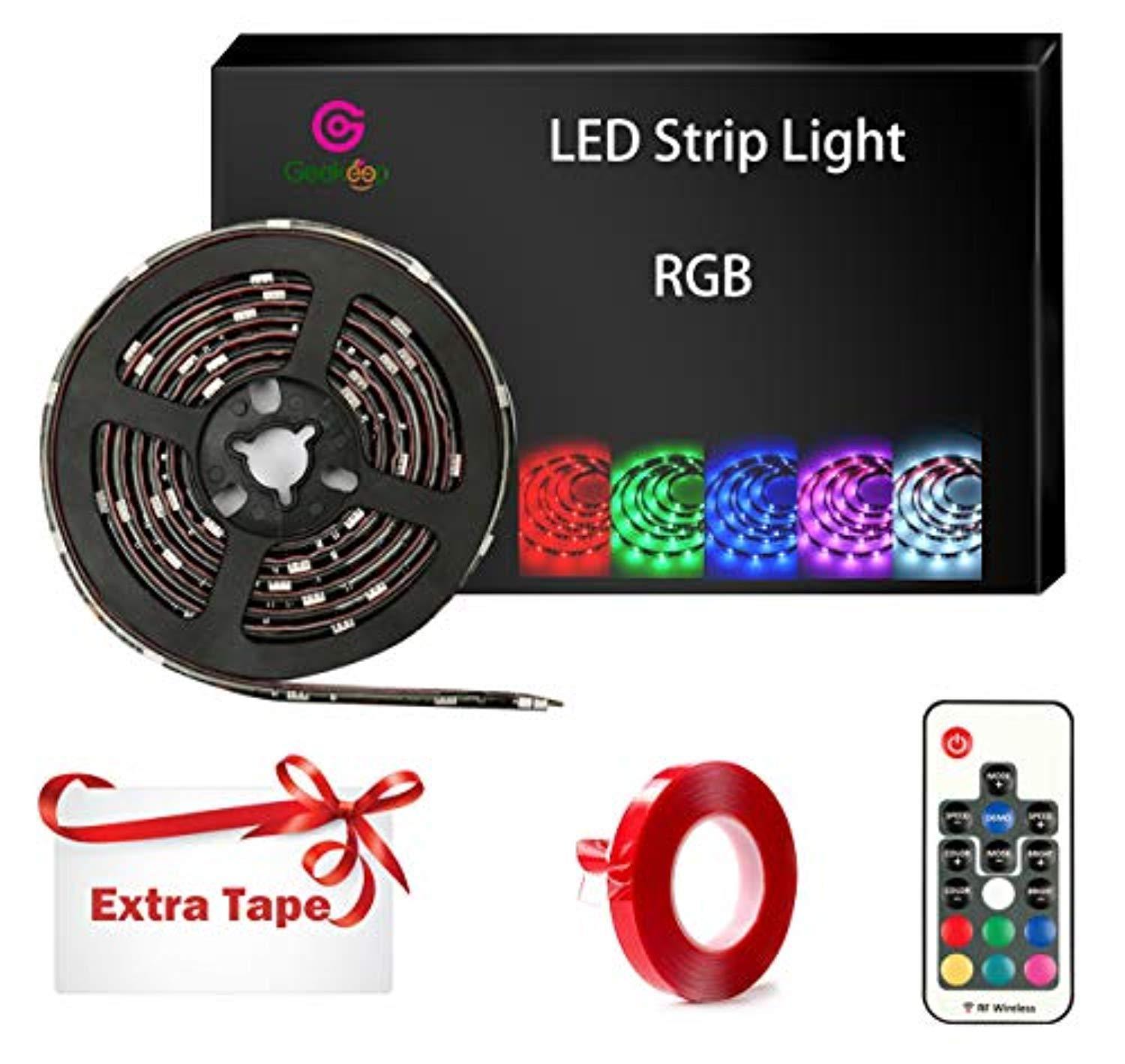 Battery Powered LED Strip Lights,Geekeep Waterproof RGB LED Light Strips,Flexible and Cuttable Rope Light with Battery Pack and USB Cable,17 Key RF Wireless Remote Controller-Black (2m/6.56ft)