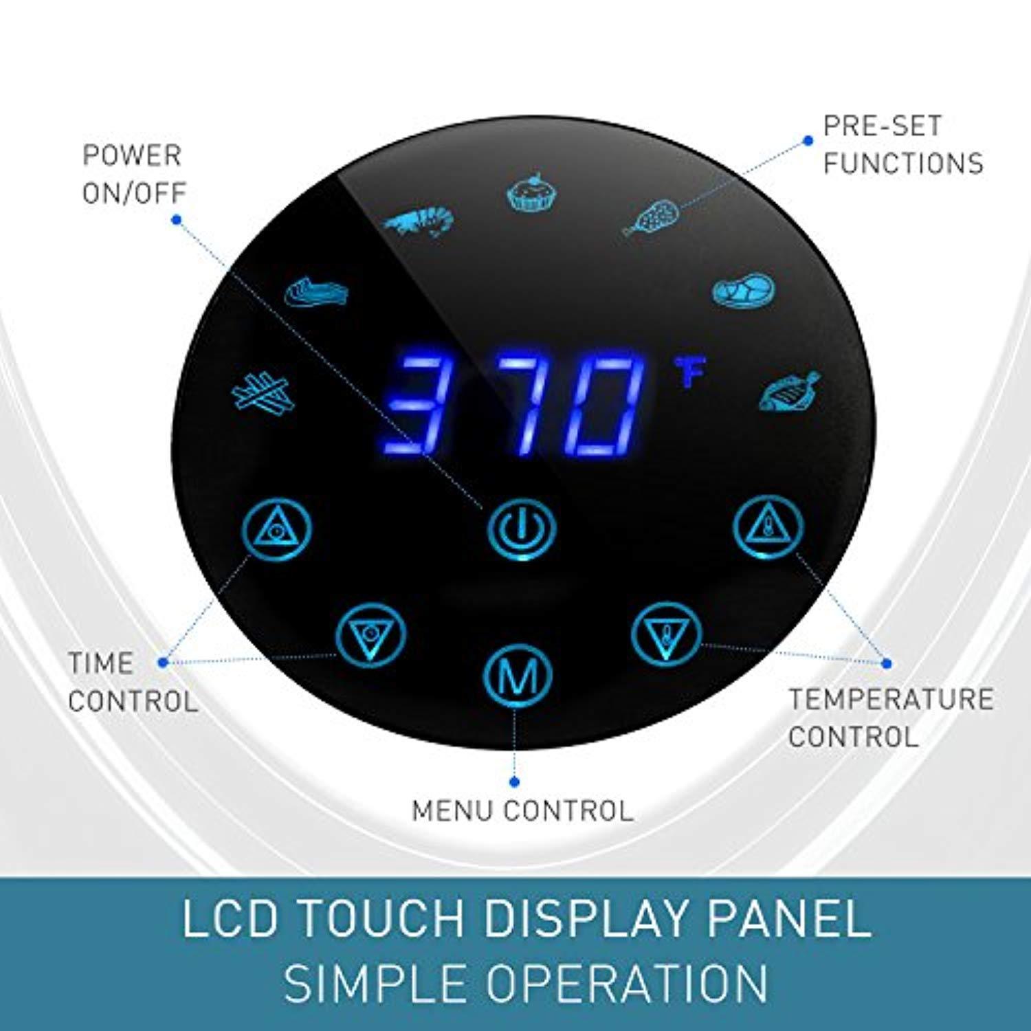 • 🥘 EASY TO USE DIGITAL DISPLAY – Set the temperature from 170 F- 400F using the touch screen, then set the timer to cook your food to perfection. An indicator will let you know when the food is ready to eat.