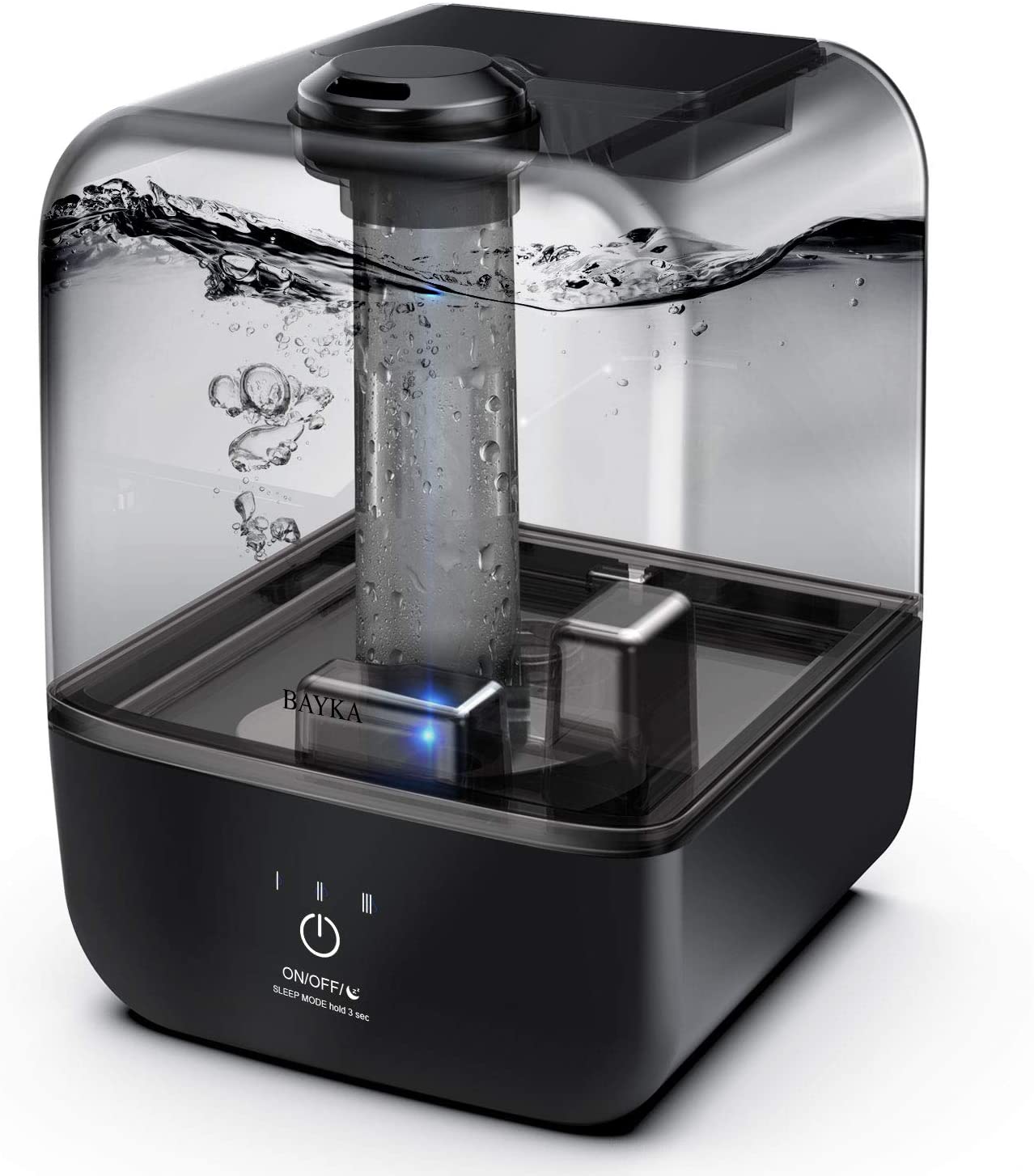 • Deep Sleep Mode –BAYKA bedroom humidifier is fitted with ultrasonic vibrating diaphragms that force tiny drips of water into the air. This feature makes the humidifier quieter than others. Turn off the nightlight by pressing the touch panel for 3s. Enjoy all night mist and rest easily.