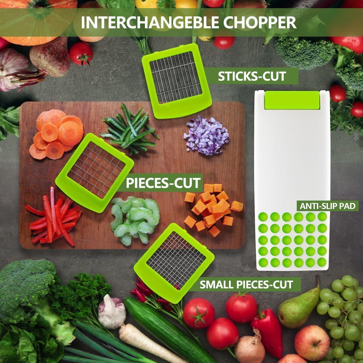 13 IN 1 VEGETABLE SLICER - With 11 sharp interchangeable stainless-steel blades with more than 10 functions,...