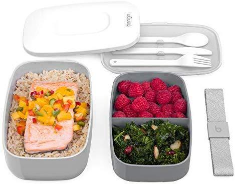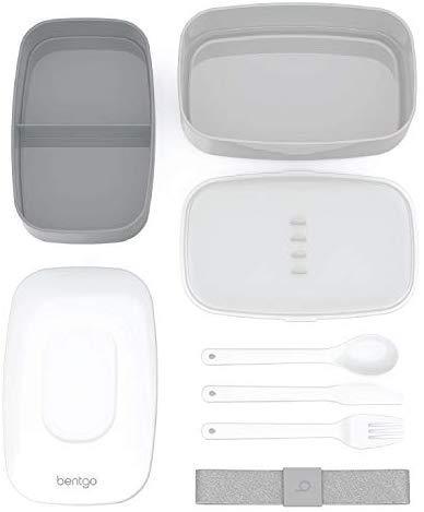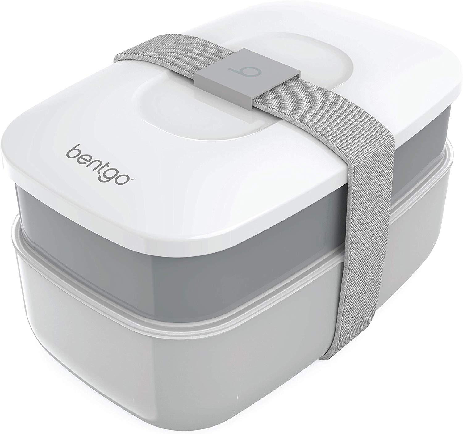 Bentgo Classic - All-in-One Stackable Bento Lunch Box Container - Sleek and Modern Bento-Style Design Includes 2 Stackable Containers, Built-in Plastic Utensil Set, and Nylon Sealing Strap (Gray)
