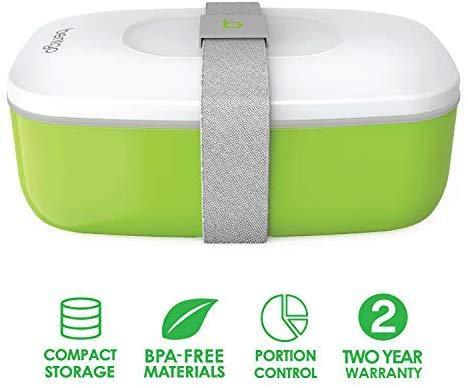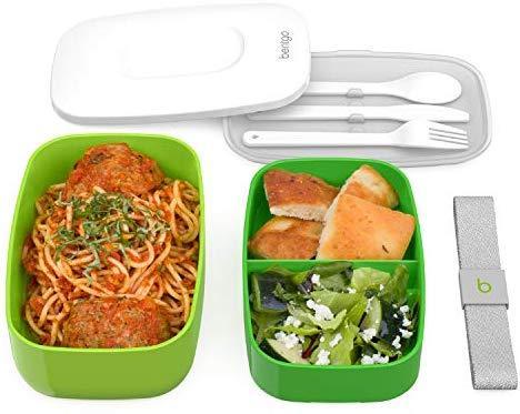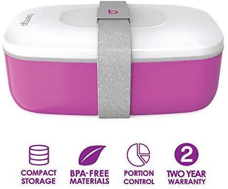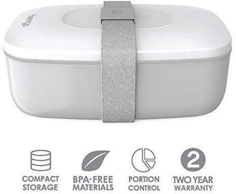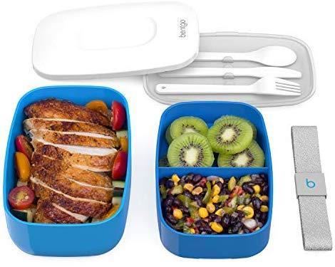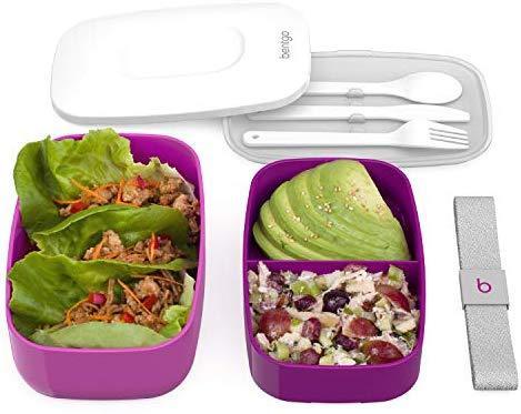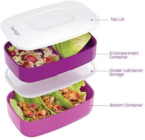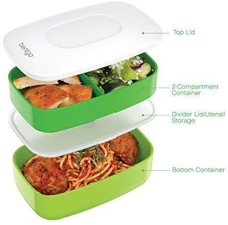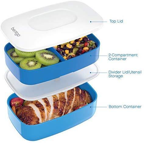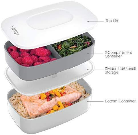 • 2 STACKABLE CONTAINERS: Top container features 2 compartments that each hold 3/4 cups of food while the bottom container holds 2 cups — together they’re perfect for packing a variety of foods in healthy portions