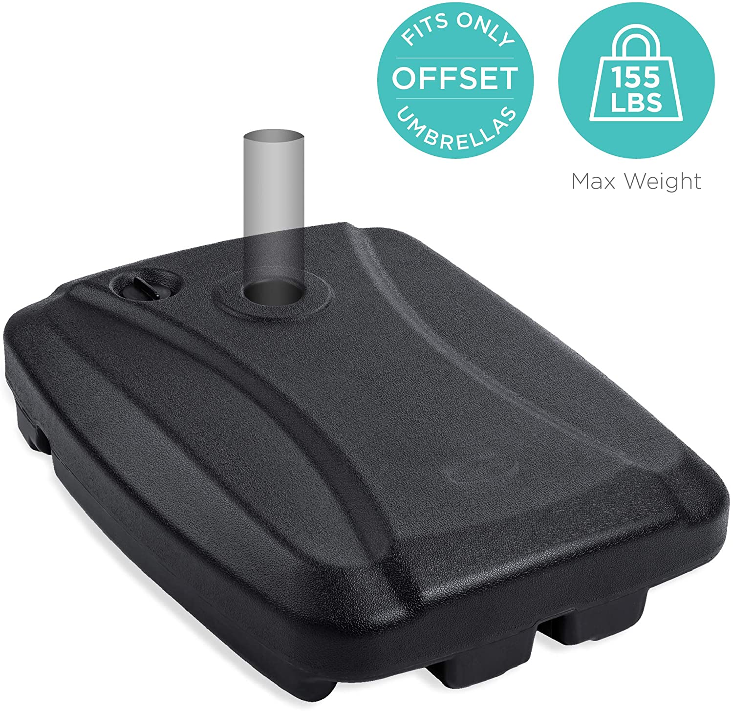 • ESSENTIAL ACCESSORY: Built exclusively to provide a stable base for offset patio umbrellas only, and ensure hours of wind-resistant shading; OVERALL DIMENSIONS: 32"(L) x 24"(W) x 6.5"(H); Pole: 2.75"(Dia); Filling Capacity: 53L