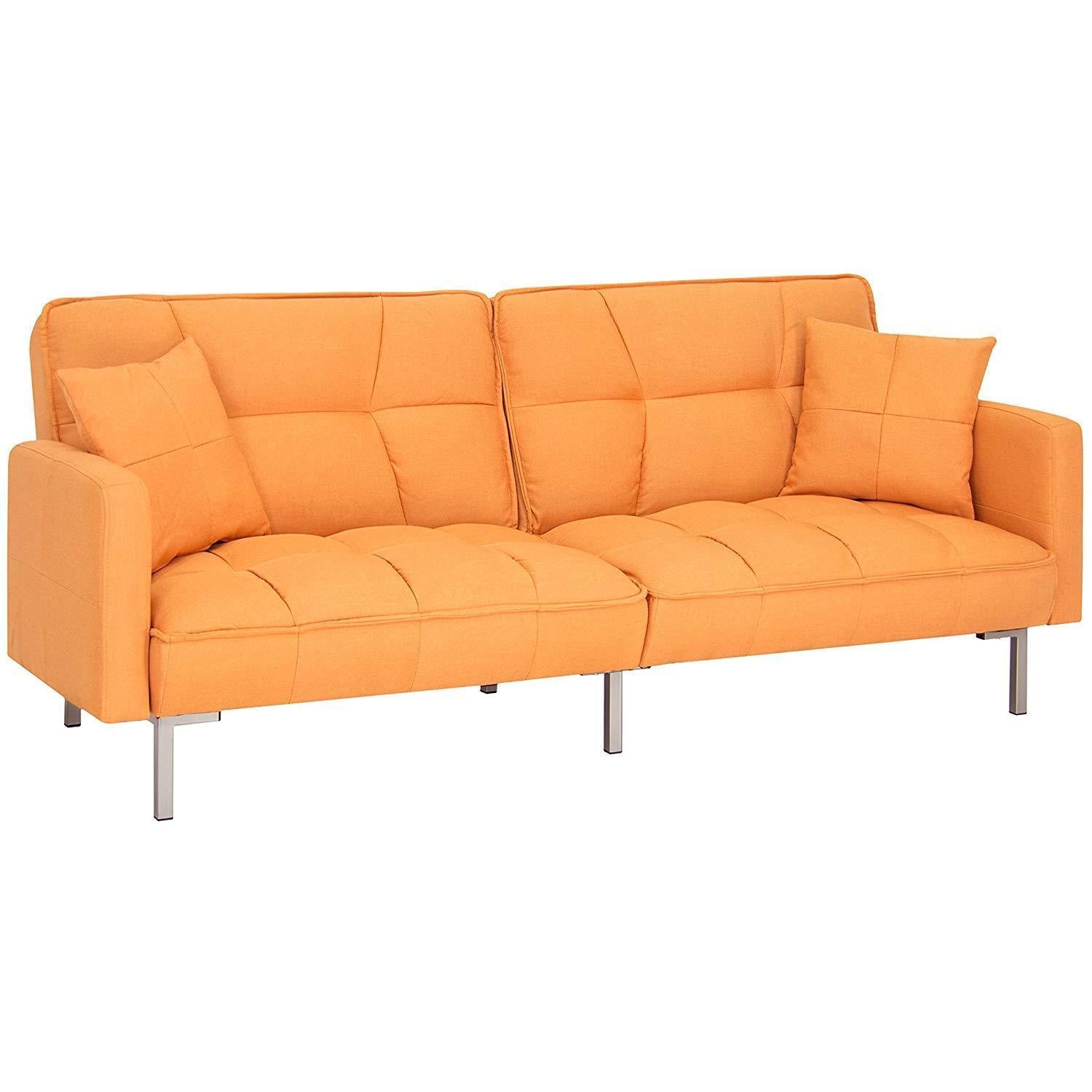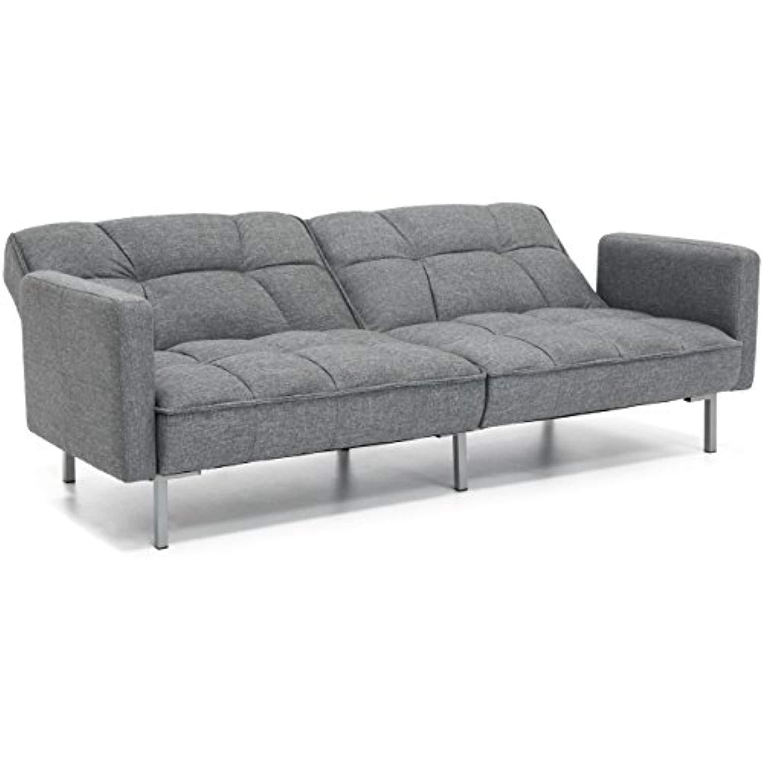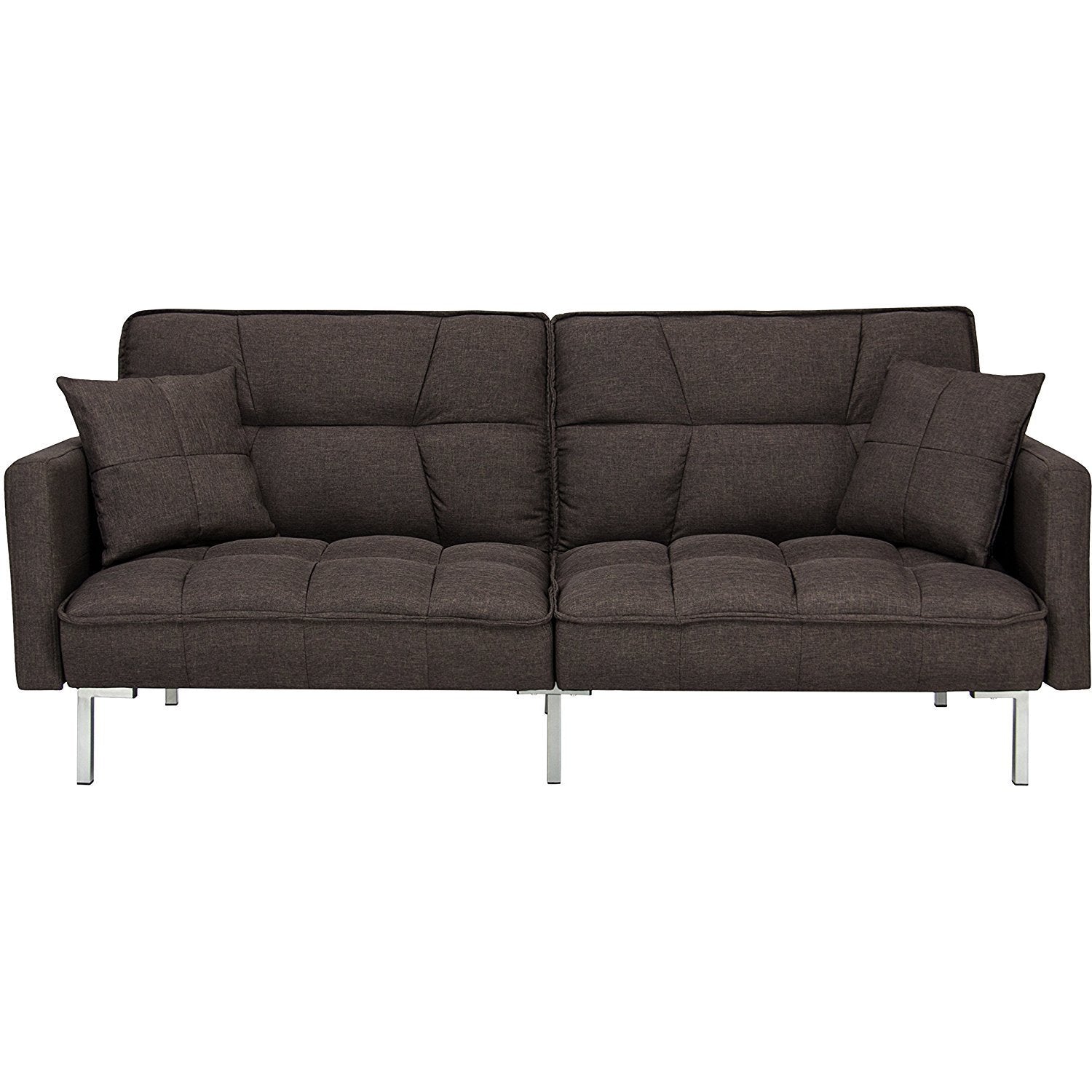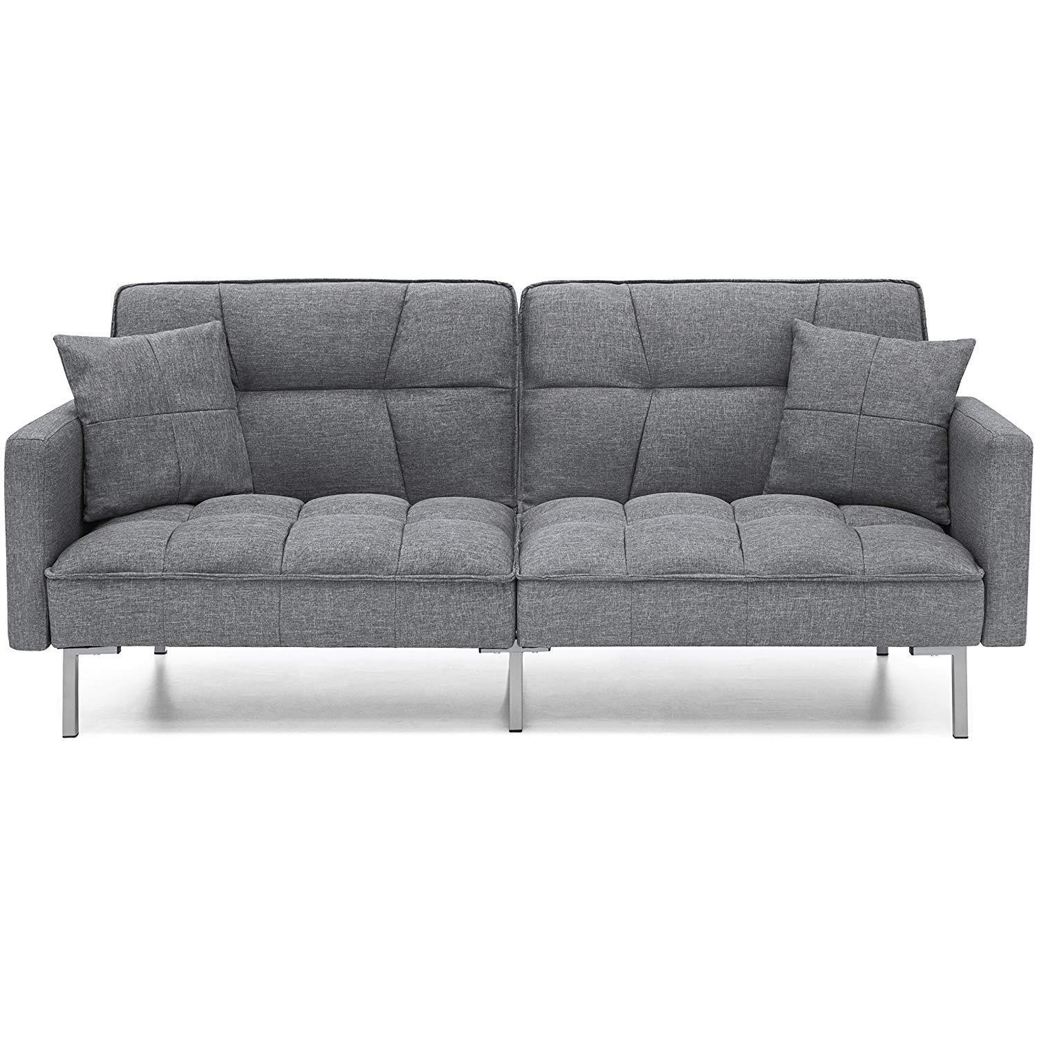 Best Choice Products Living Room Convertible Linen Fabric Tufted Splitback Sleeper Plush Futon Couch Furniture w/ Pillows - Light Sea Foam Gray