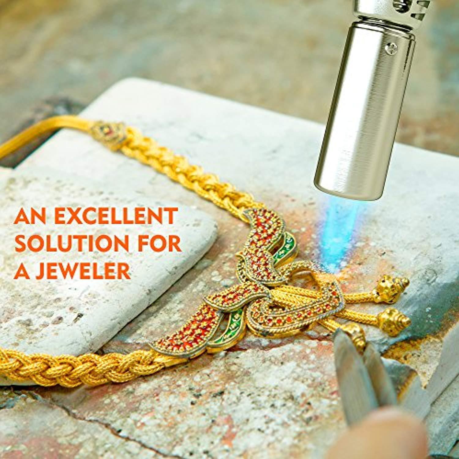 • ★ MORE THAN JUST A KHCCHEN TOOL – thanks to the innovative design, our SAFE adjustable flame lighter serves not only as an excellent cooking torch for crème brulee, meat, seafood, etc. but also as a durable butane blow torch for welding, soldering, brazing, jewelry crafting, repairs and more;