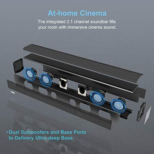 • Integrated 2.1 Channel Soundbar: quipped with 2 full ranger speakers and 2 built-in sub-woofers to deliver an immersive cinema experience and replace your TV's built-in speakers with deeper bass and crystal clear whispers.