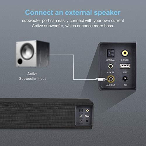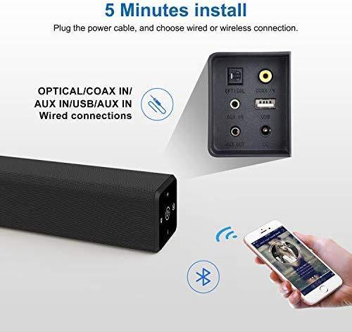 • Wire or Wireless Connections: Connect physically via the digital optical, digital coaxial, or AUX connections. Alternatively, stream wirelessly via Bluetooth 5.0. Additional AUX out port to connect your current active subwoofer for ultra-deep bass.