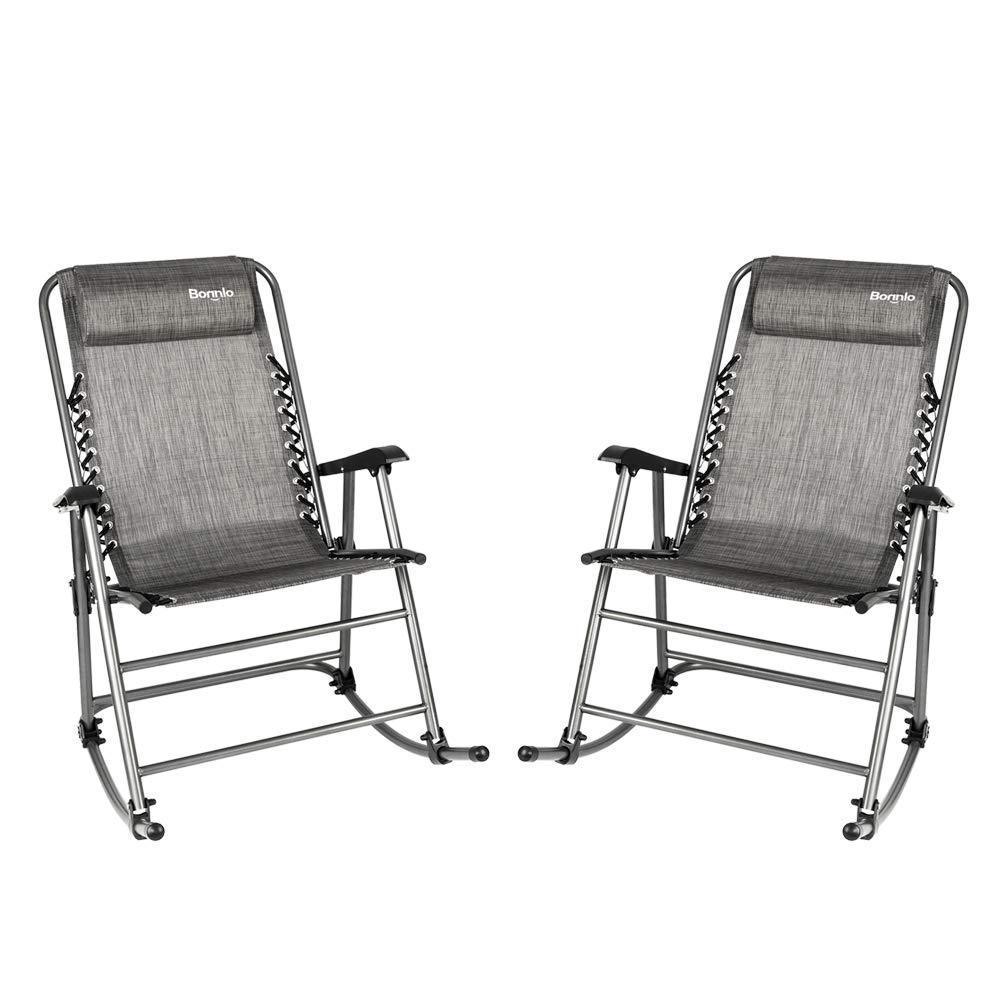Bonnlo Set of 2 Zero Gravity Rocking Chair Patio Lawn Chair, Beach Reclining Folding Chairs, Outdoor Portable Recliner for Camping Fishing Beach (Grey-2pcs)