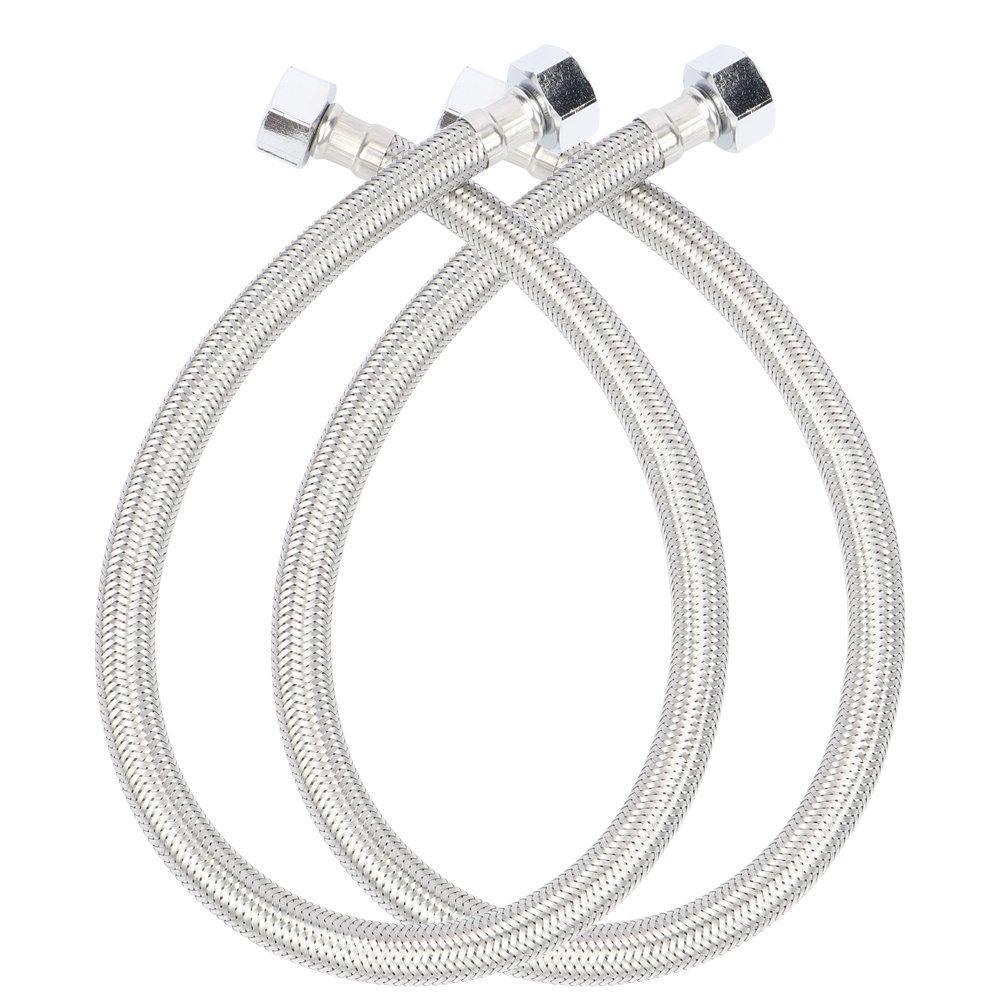 BOSNELL 24-Inch Long Faucet Connector Braided Stainless Steel Water Supply Hose 2 1/2" I.P.Female Straight Thread Faucet Hose Replacement Pack of 2(1 Pair)