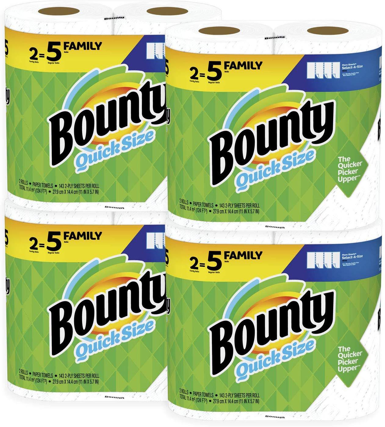 Bounty Quick-Size Paper Towels, White, 8 Family Rolls = 20 Regular Rolls
