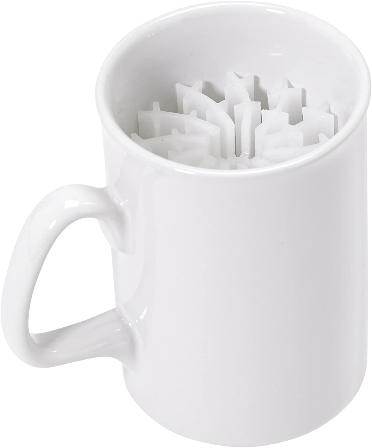 • Plastic insert sits inside the mug to restrict the flow of liquid