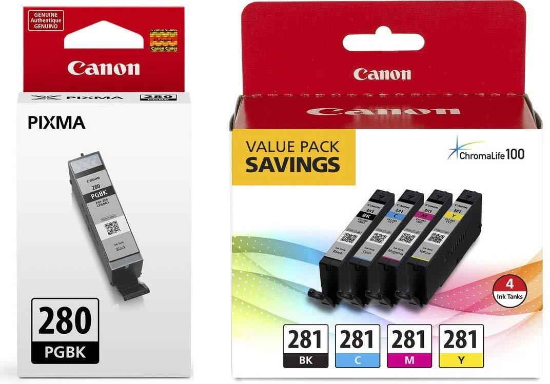 Canon CLI-281 BKCMY 4-Color Ink Tank Value Pack (2091C005) + Canon PGI-280 Pigment Black Ink Tank (2075C001)