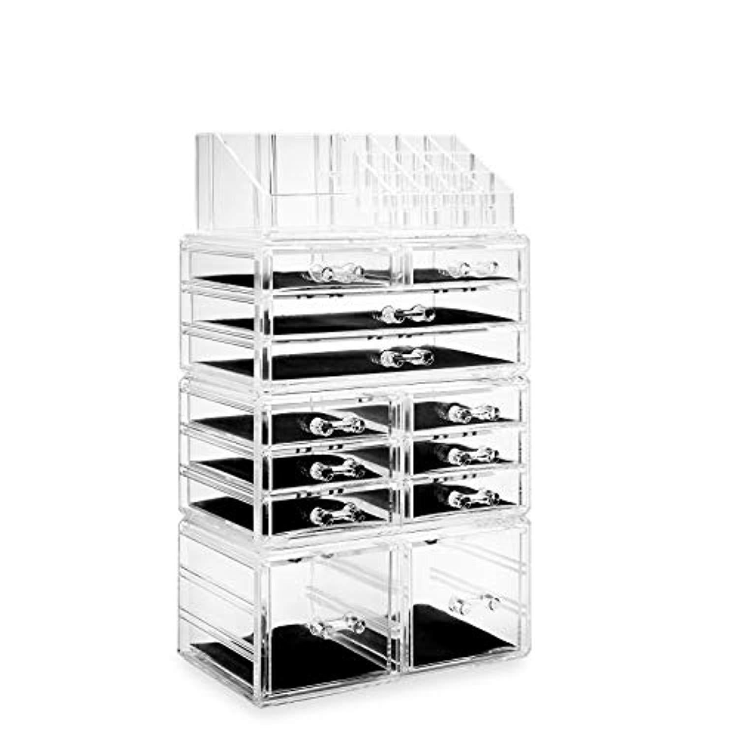 Casafield Acrylic Cosmetic Makeup Organizer & Jewelry Storage Display Case - Large 16 Slot, 2 Box & 10 Drawer Set - Clear