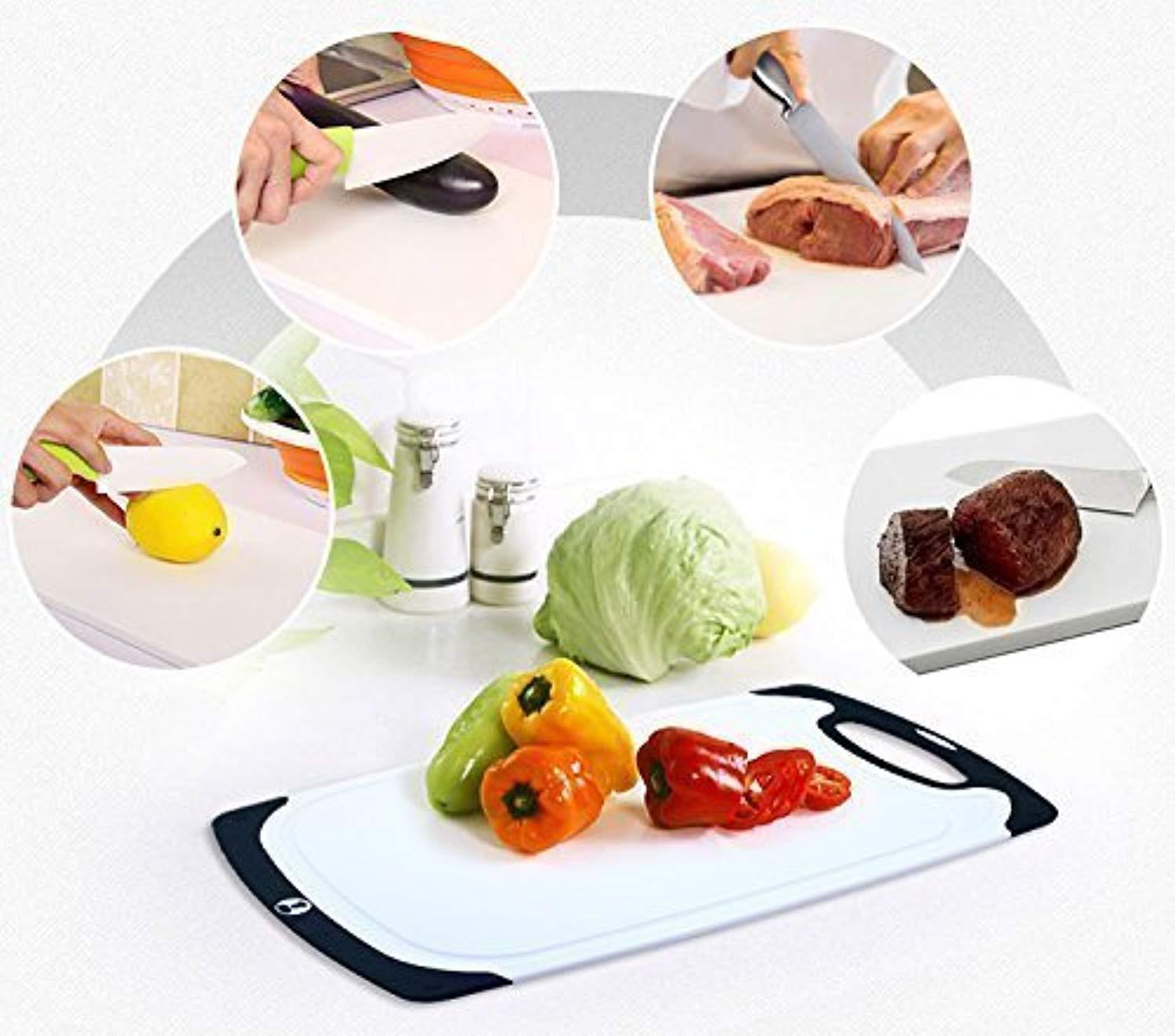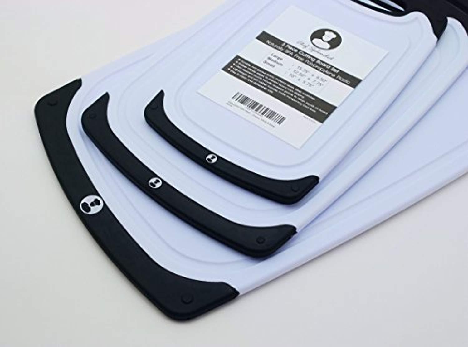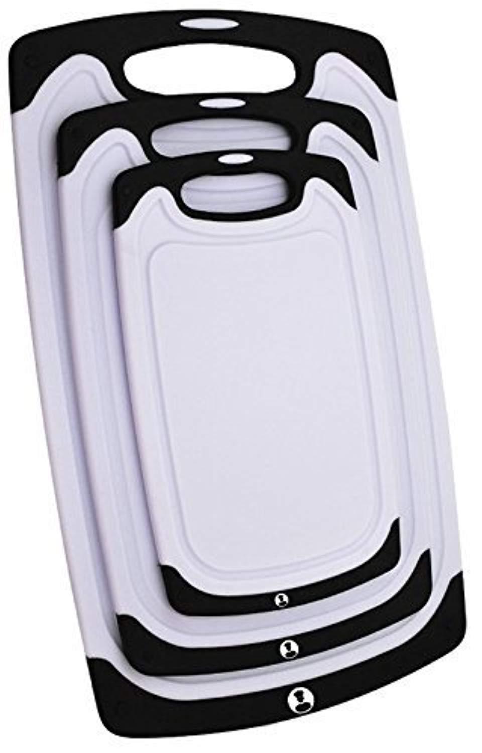 Chef Splendid 3-Piece Non-Slip Plastic Cutting Board Set, Drip Juice Groove, Dishwasher Safe, BPA Free, FDA Approved