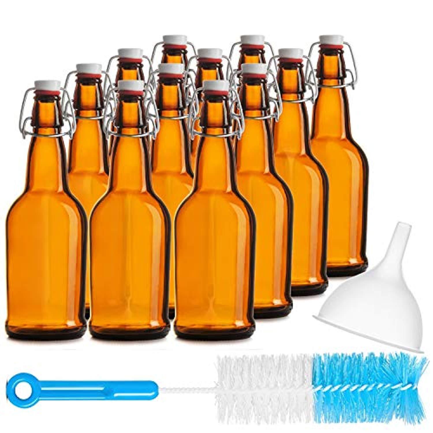 Case Of 12 | Funnel and Bottle Brush Included 16 Oz ( Ounce ) Bottles Amber Color...